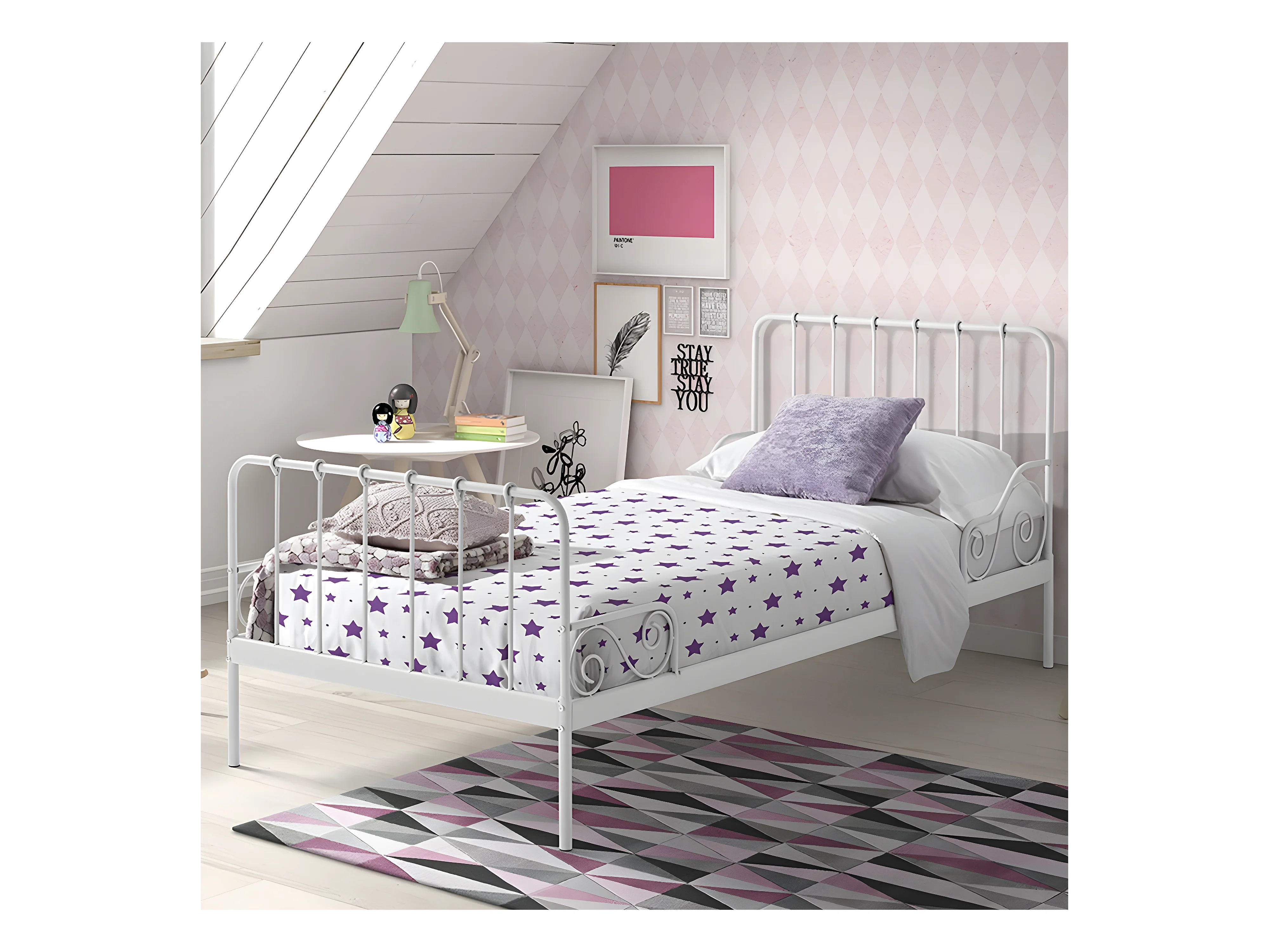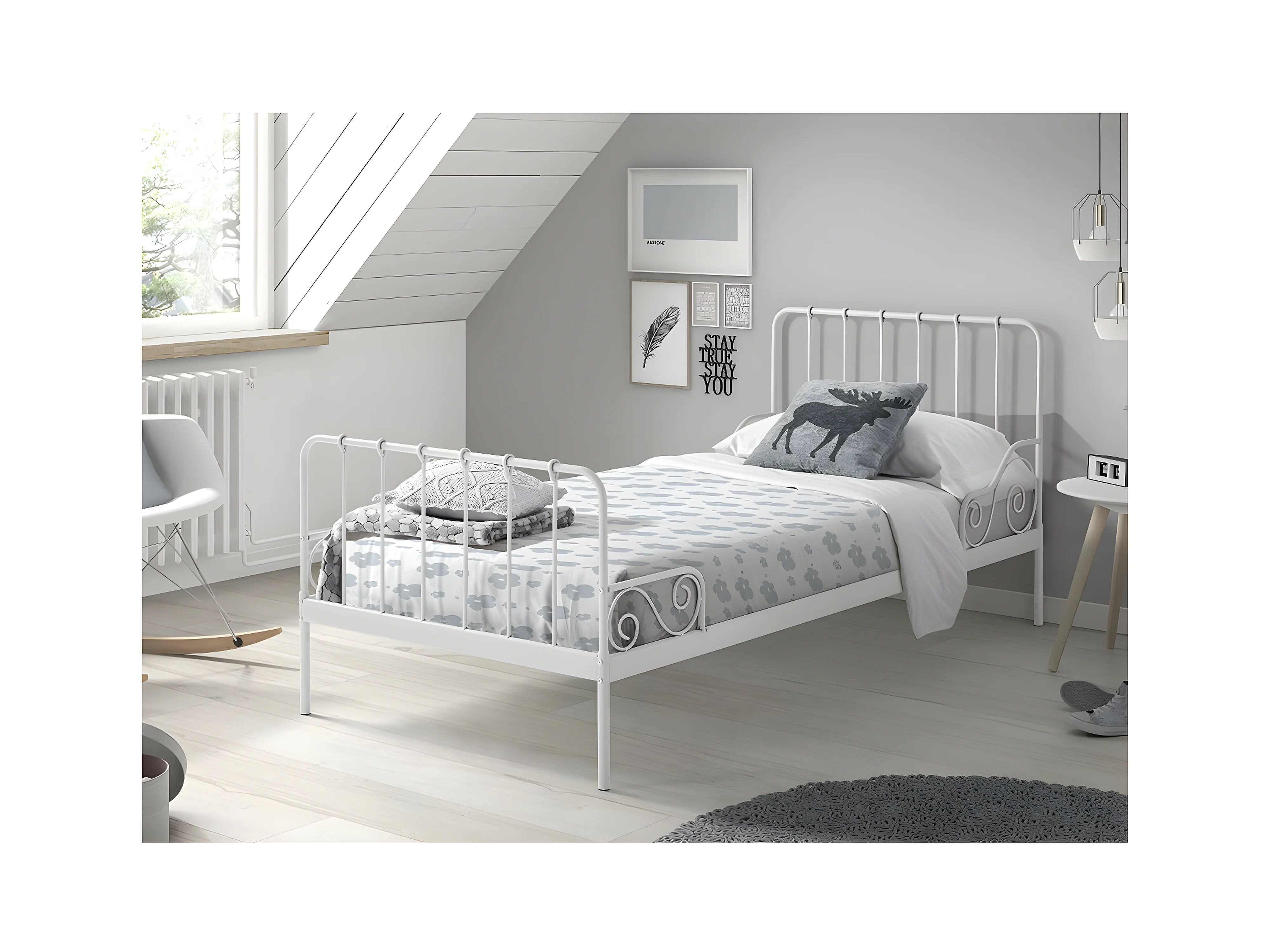 ORNAM - Lit à Barreaux 90x200cm Métal Poudré Blanc