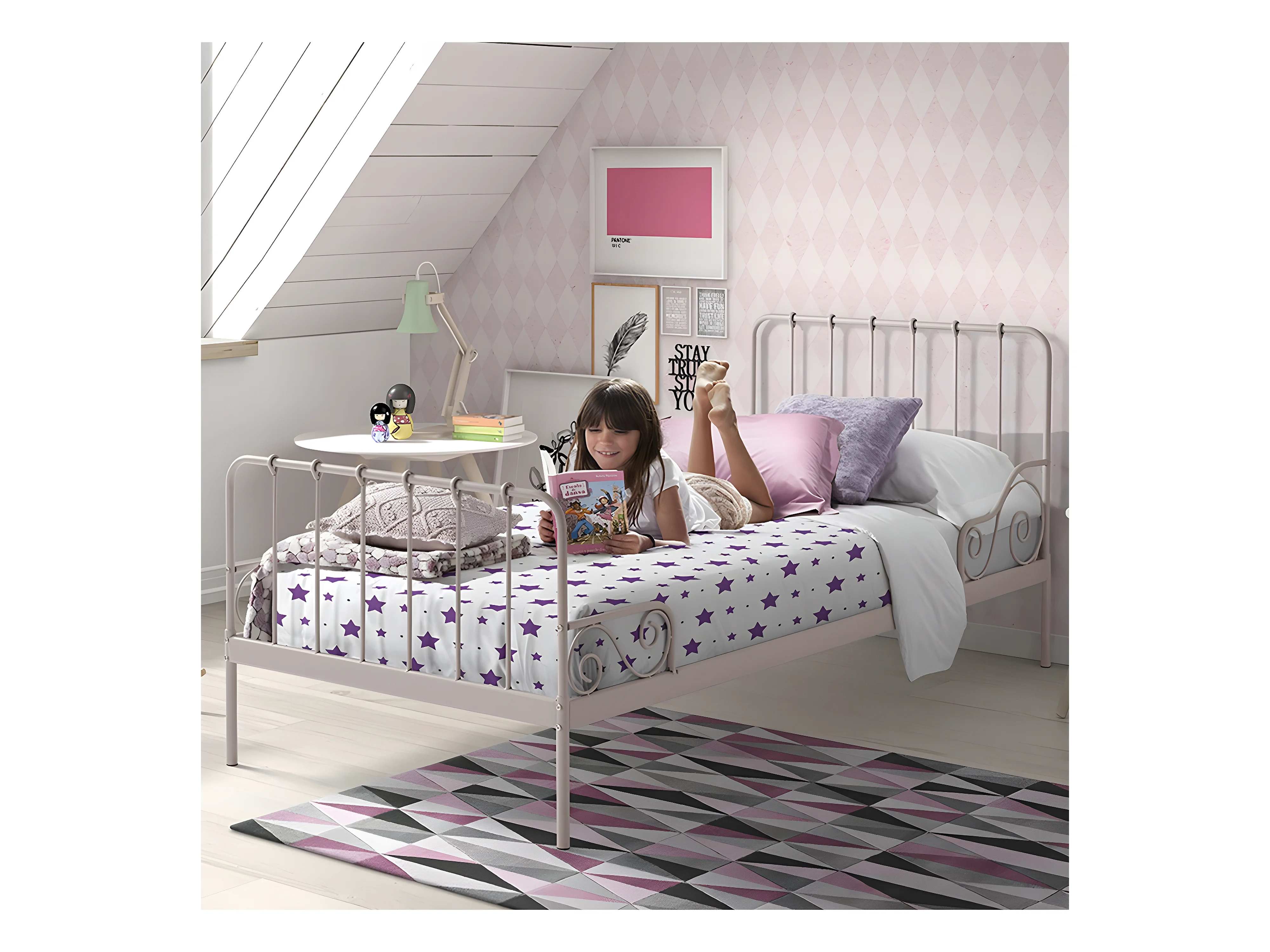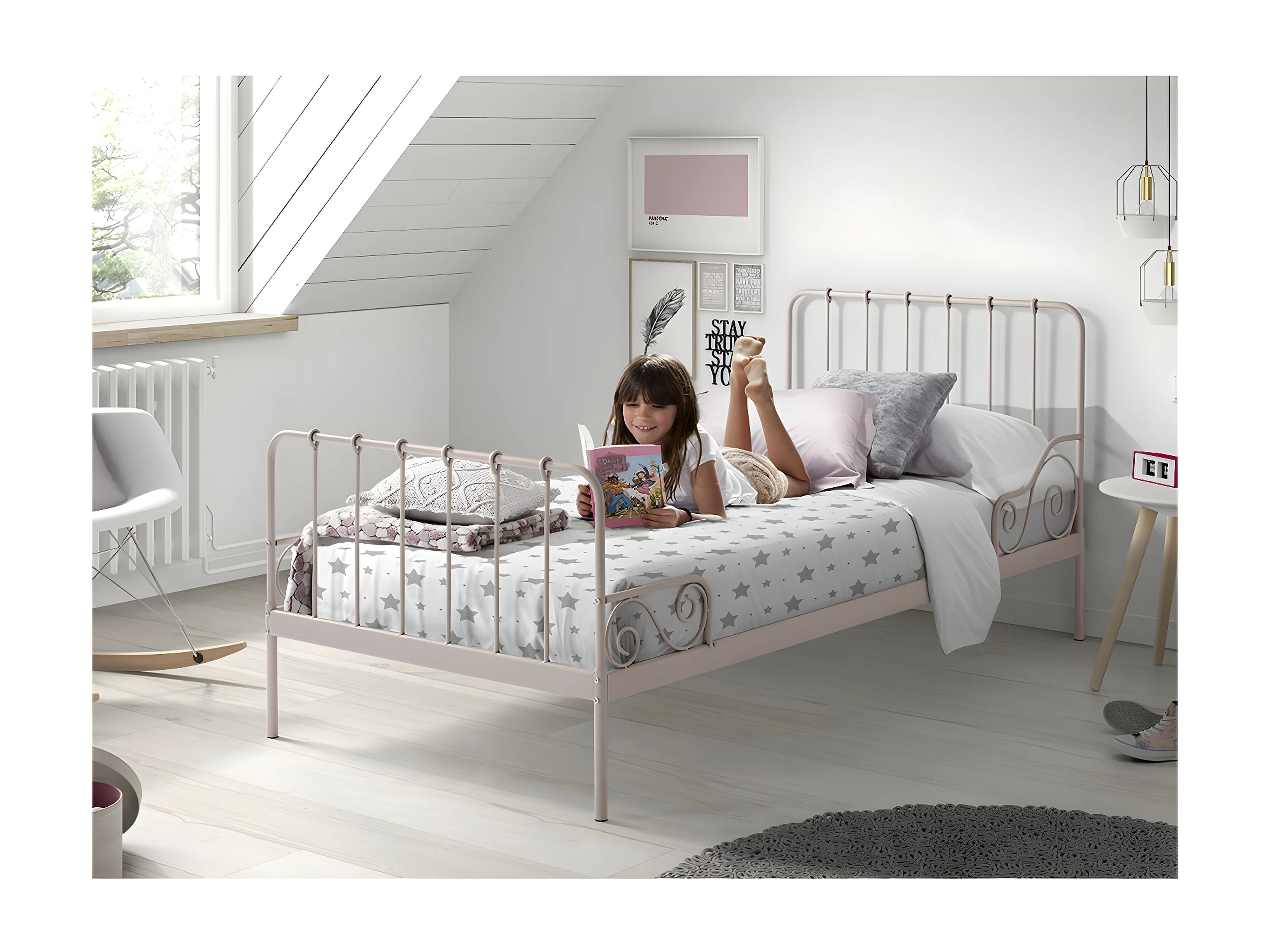 ORNAM - Lit à Barreaux 90x200cm Métal Poudré Rose
