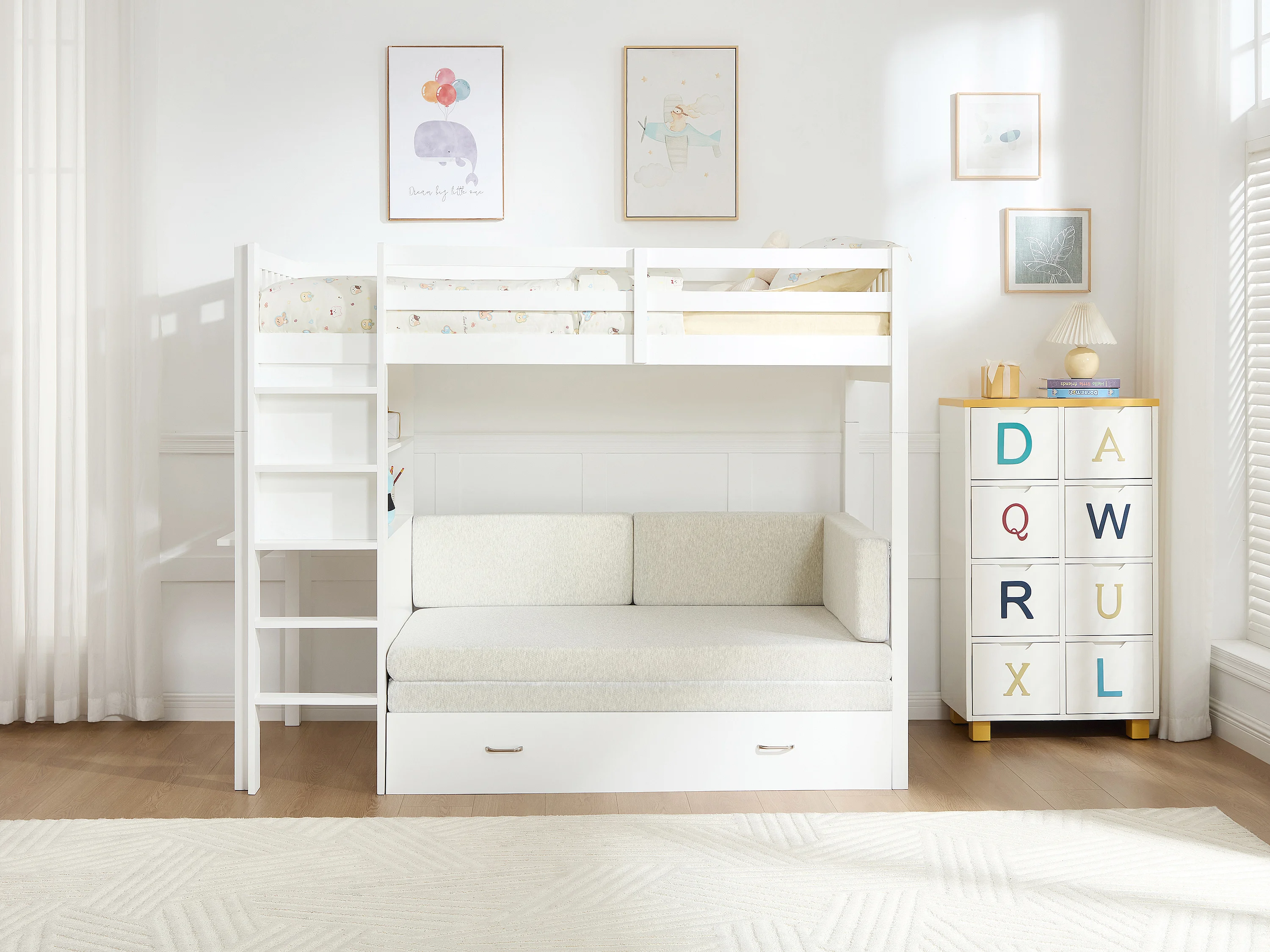 Lit mezzanine 90 X 190 cm avec sofa convertible - Pin et MDF - Blanc - ORPELIA