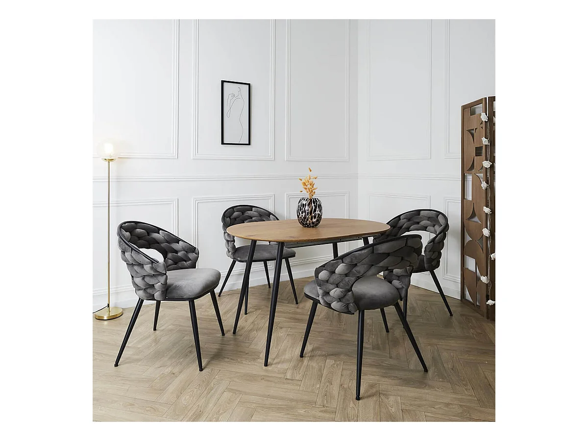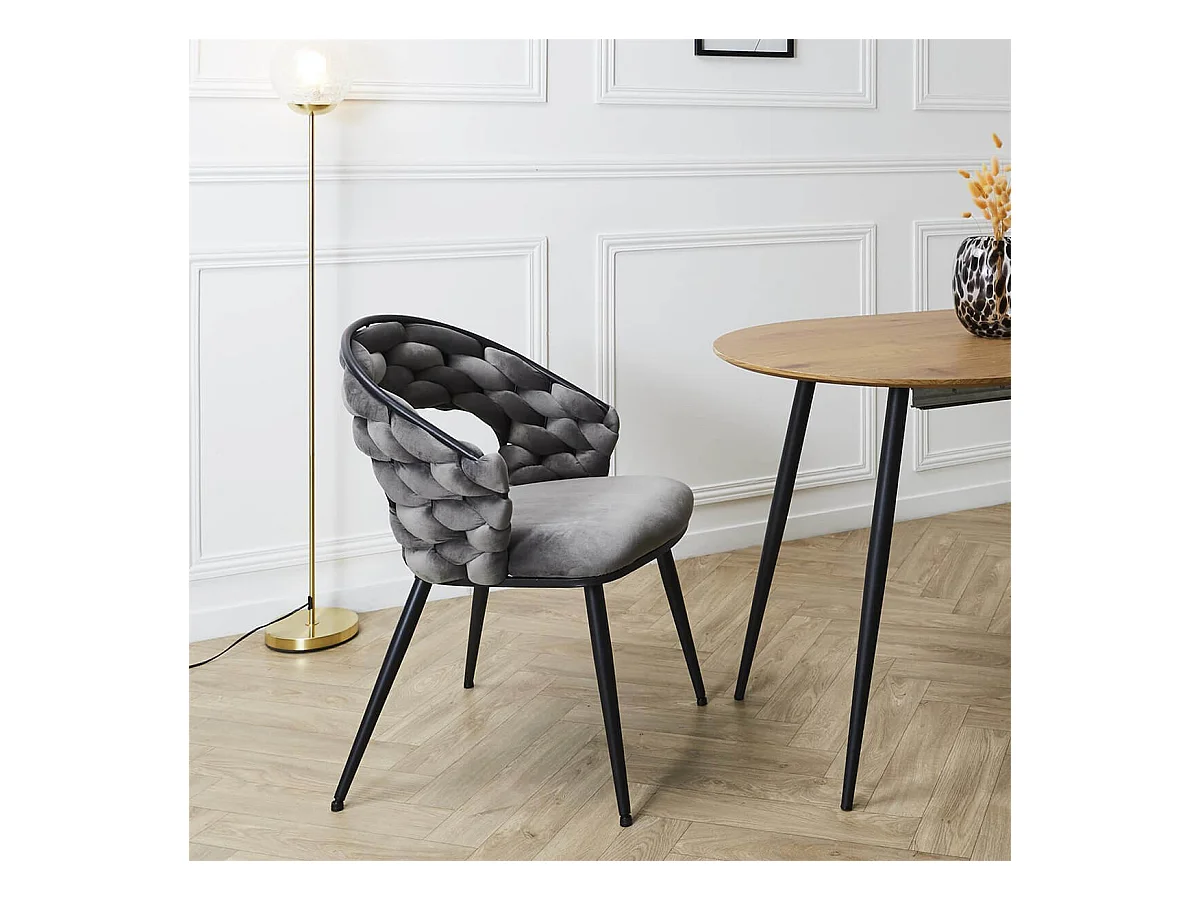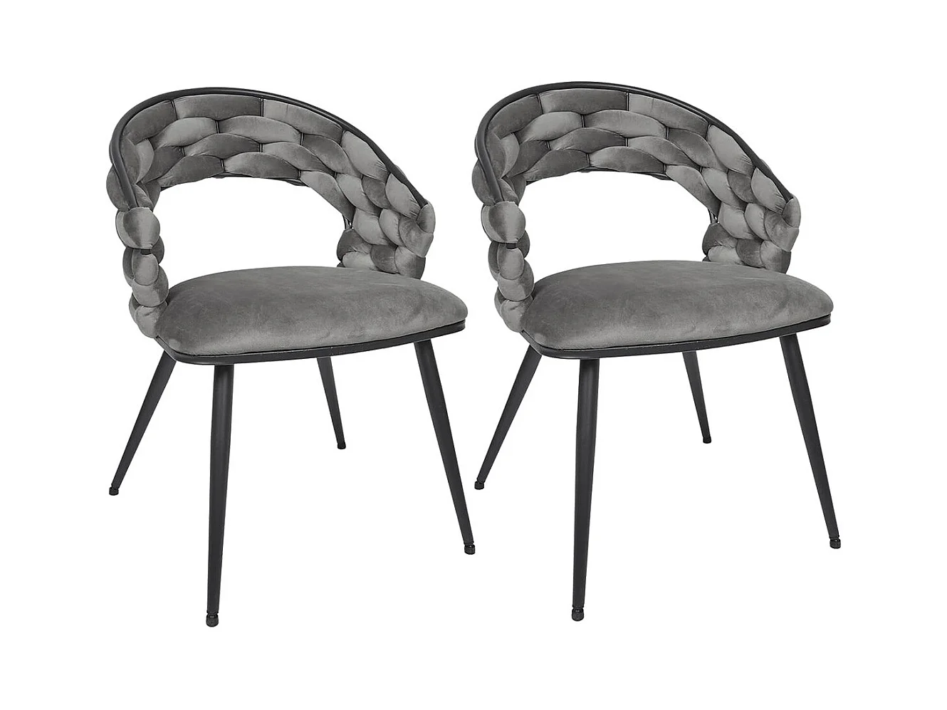 OSCAR - Lot de 2 Chaises en Velours Gris Pieds Métal Noir