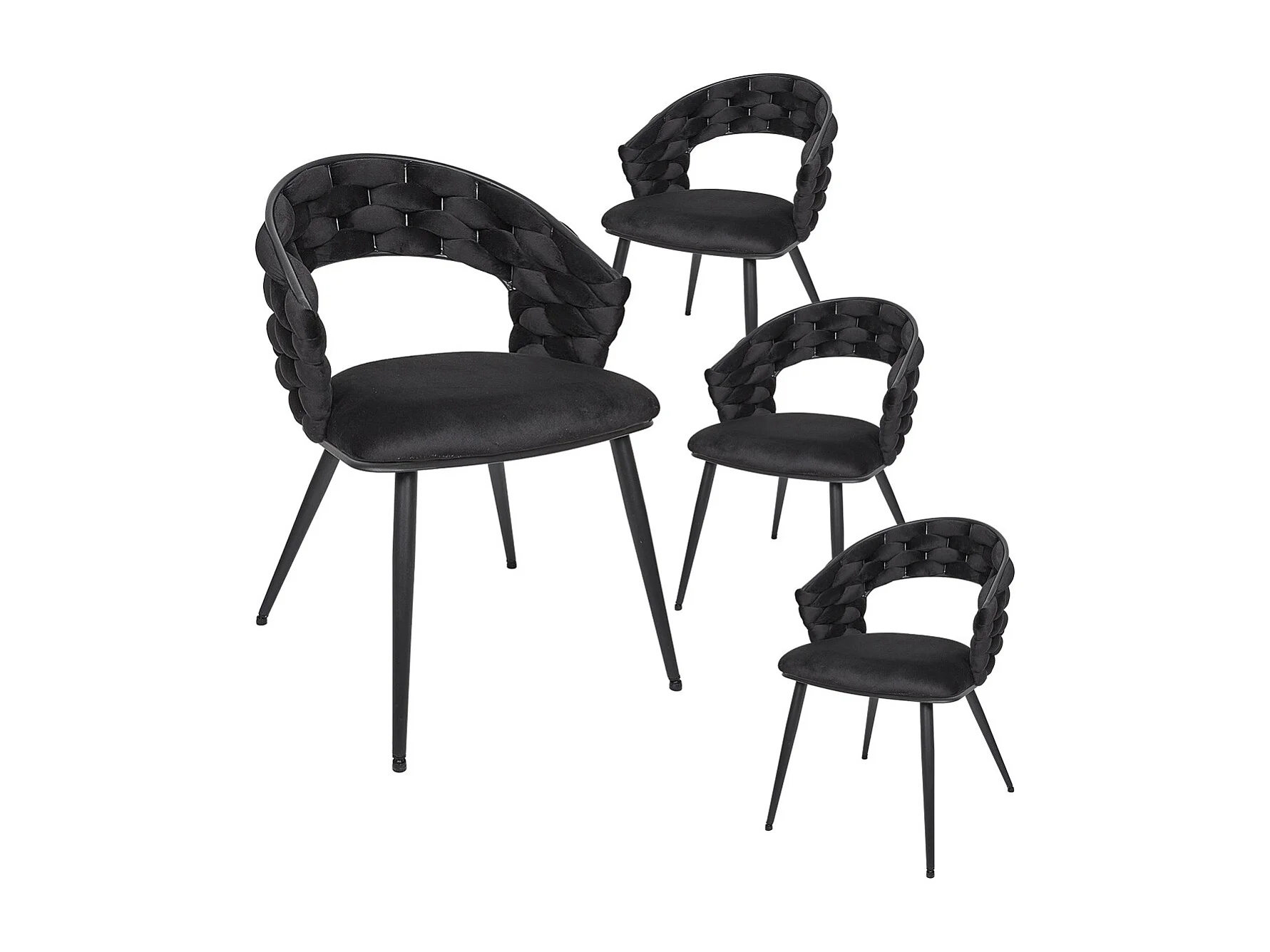 OSCAR - Lot de 4 Chaises en Velours Noir Pieds Métal Noir