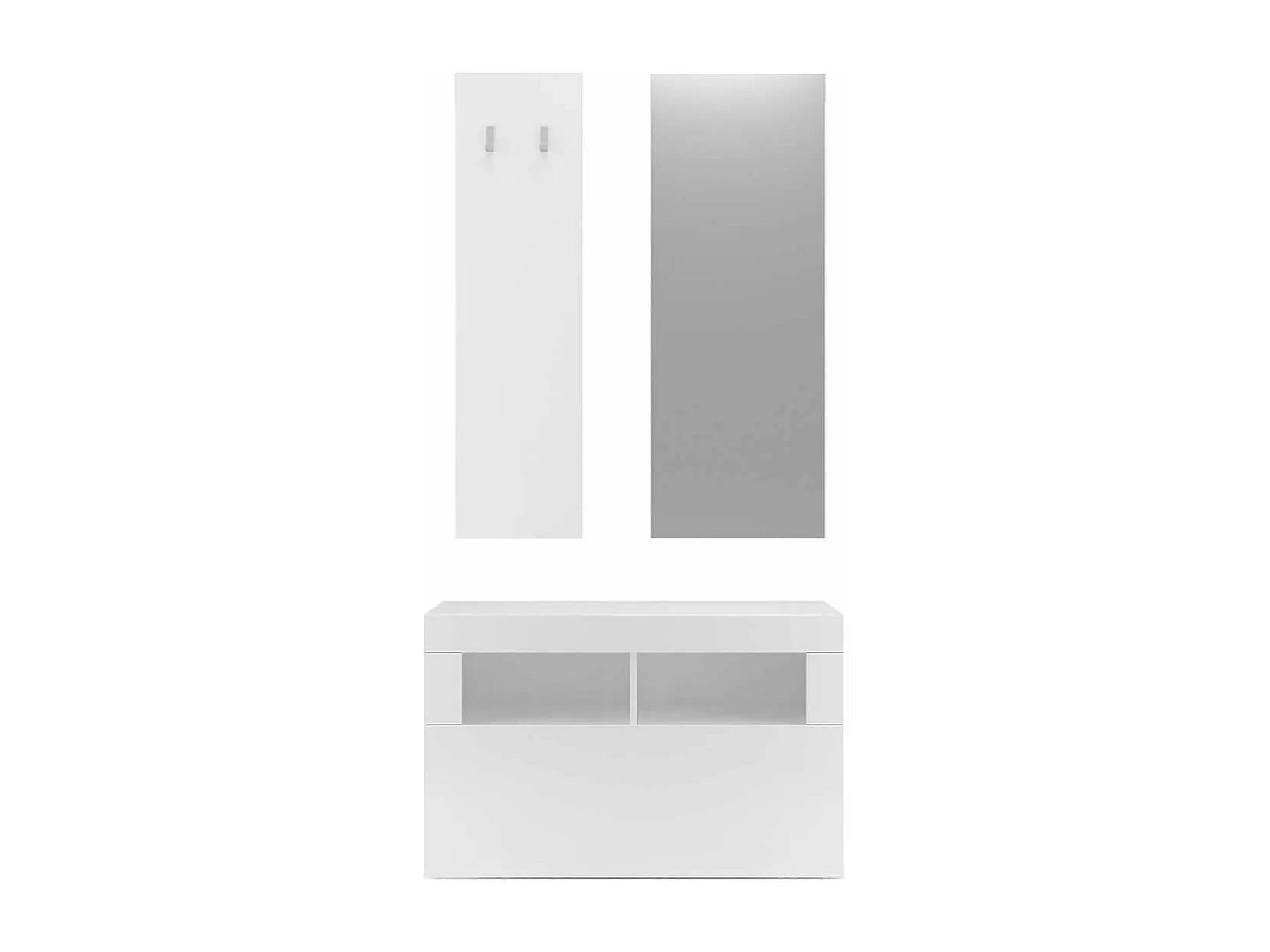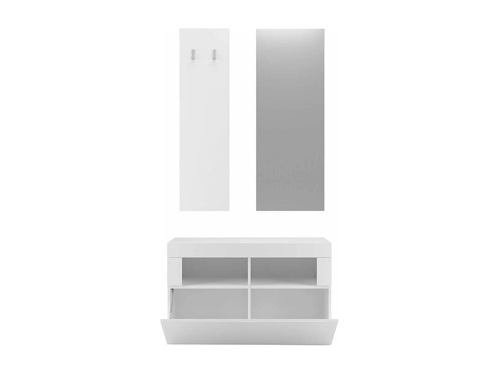 OTELLO - Meuble à chaussures avec miroir et portemanteau muraux Blanc Laqué Weiss