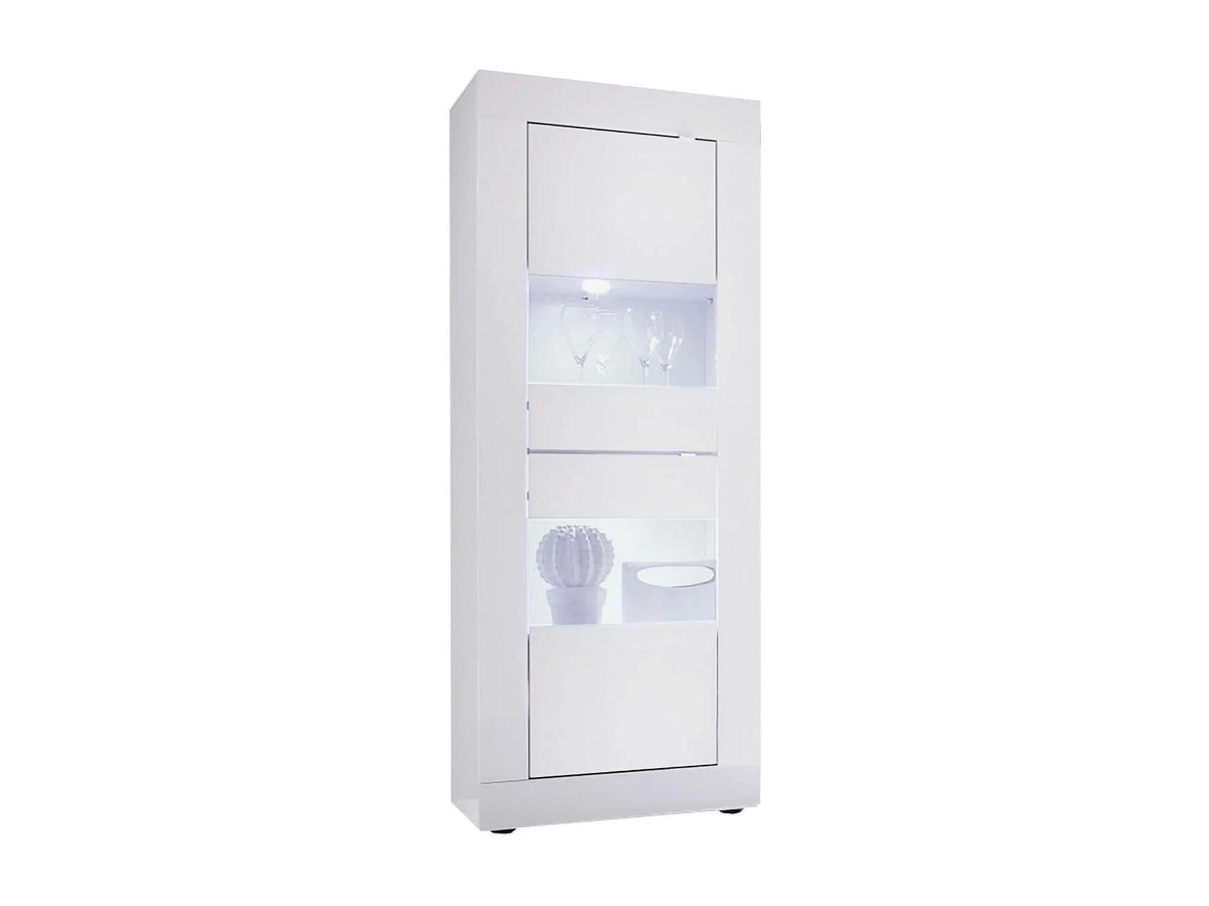 OTELLO - Vitrine 2 Portes Finition Blanc Laqué Weiss avec Leds