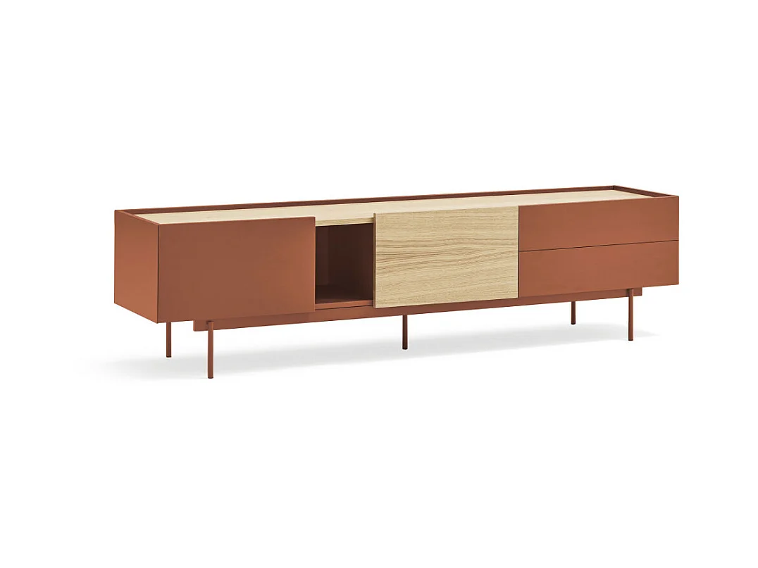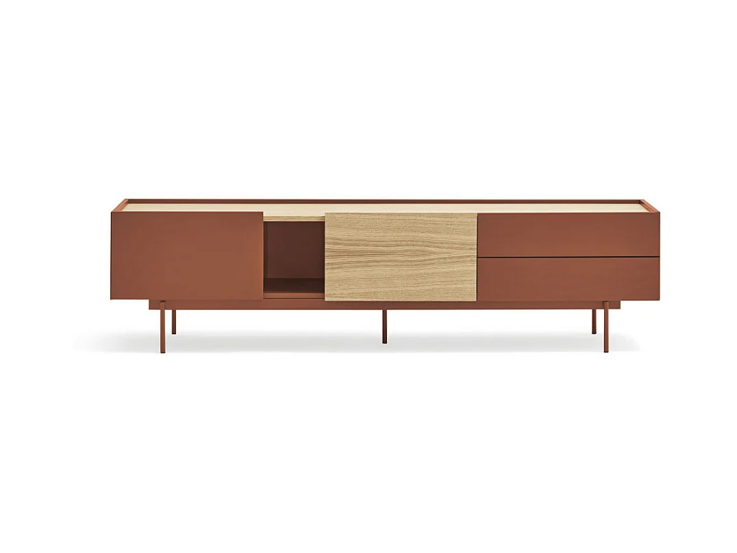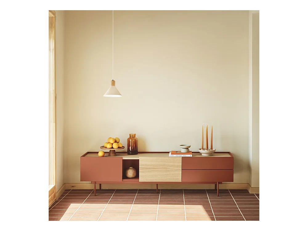 Otto - Meuble TV 2 portes, 2 tiroirs en bois L180cm - Rouge brique