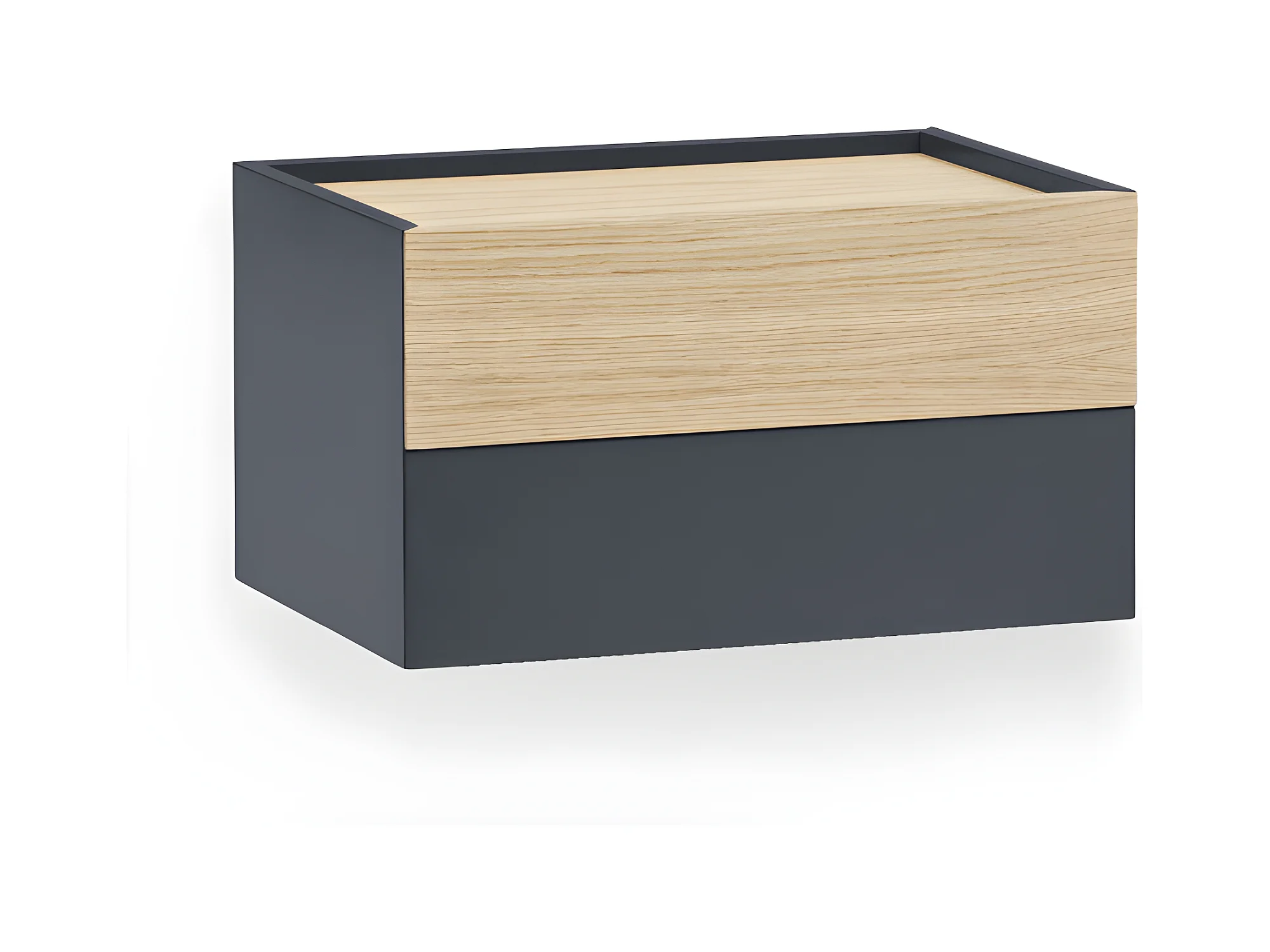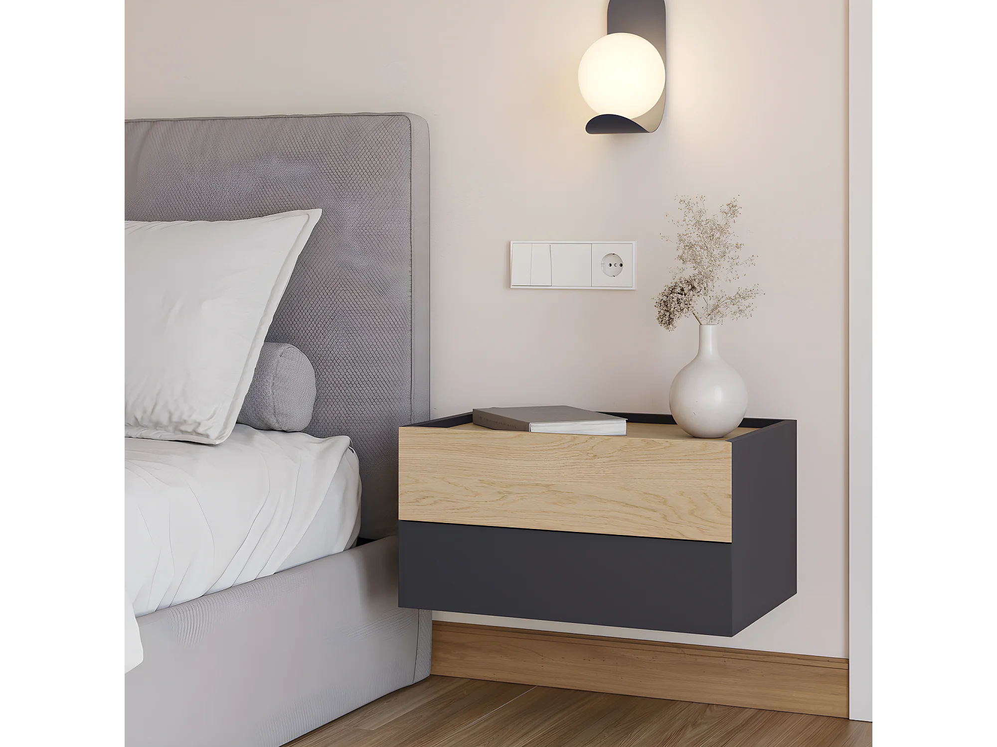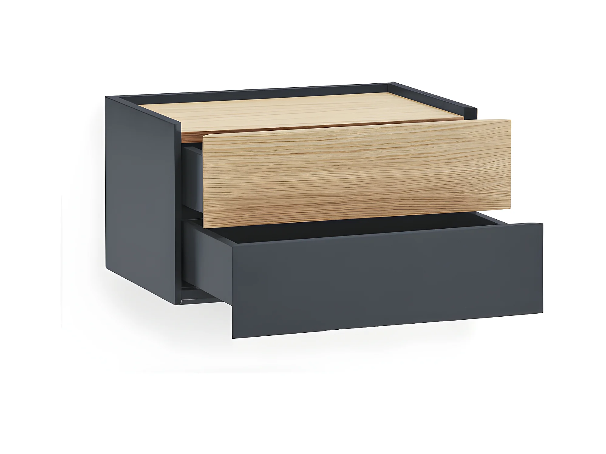 Otto - Table de chevet murale 2 tiroirs en bois - Gris anthracite