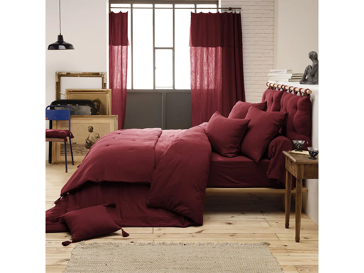 OUREA - Chemin de Lit 90x200cm Capitonné Gaze de Coton Lie de Vin