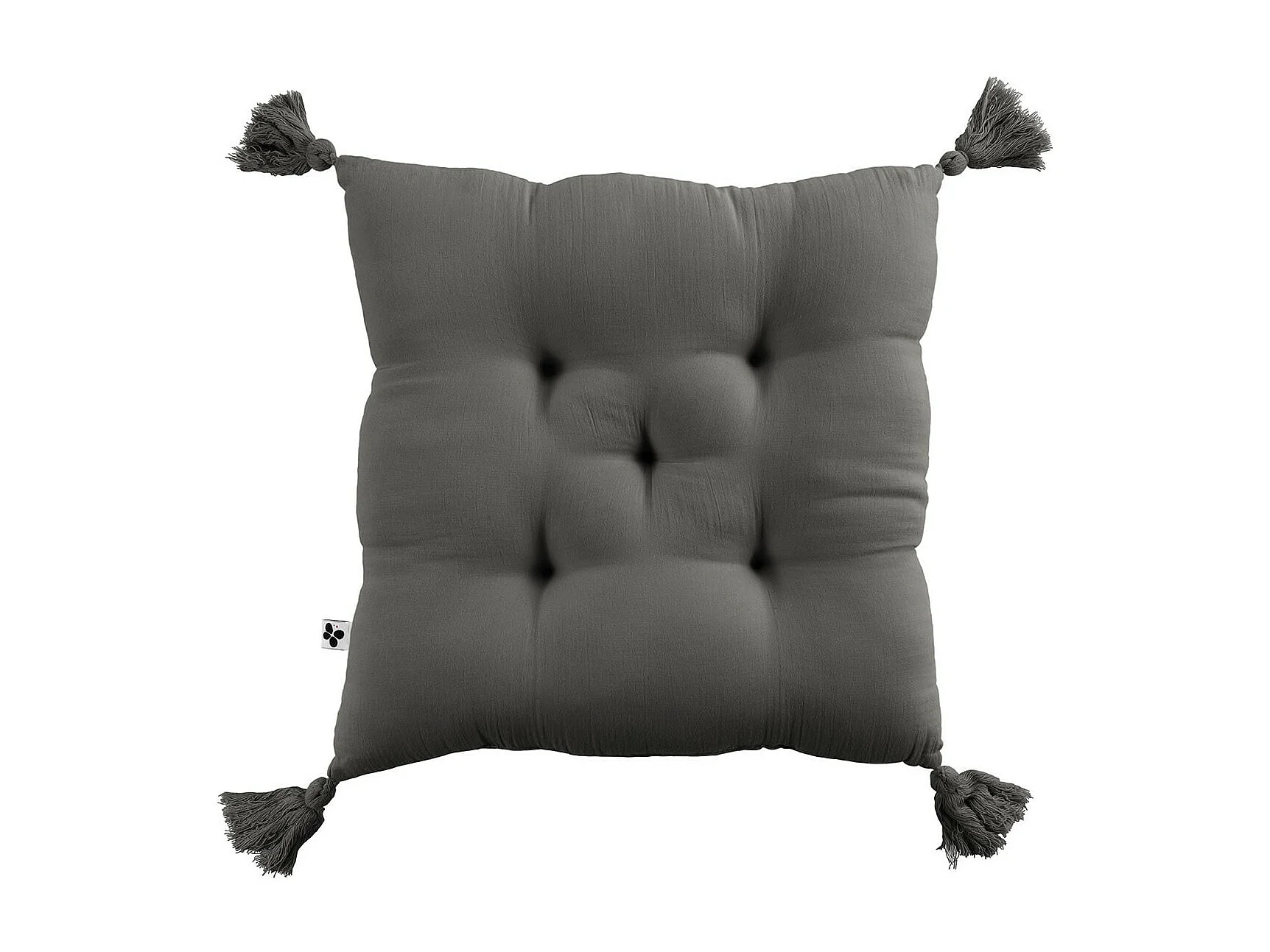 OUREA - Coussin Capitonné 40x40cm avec Pompons Gaze de Coton Granit