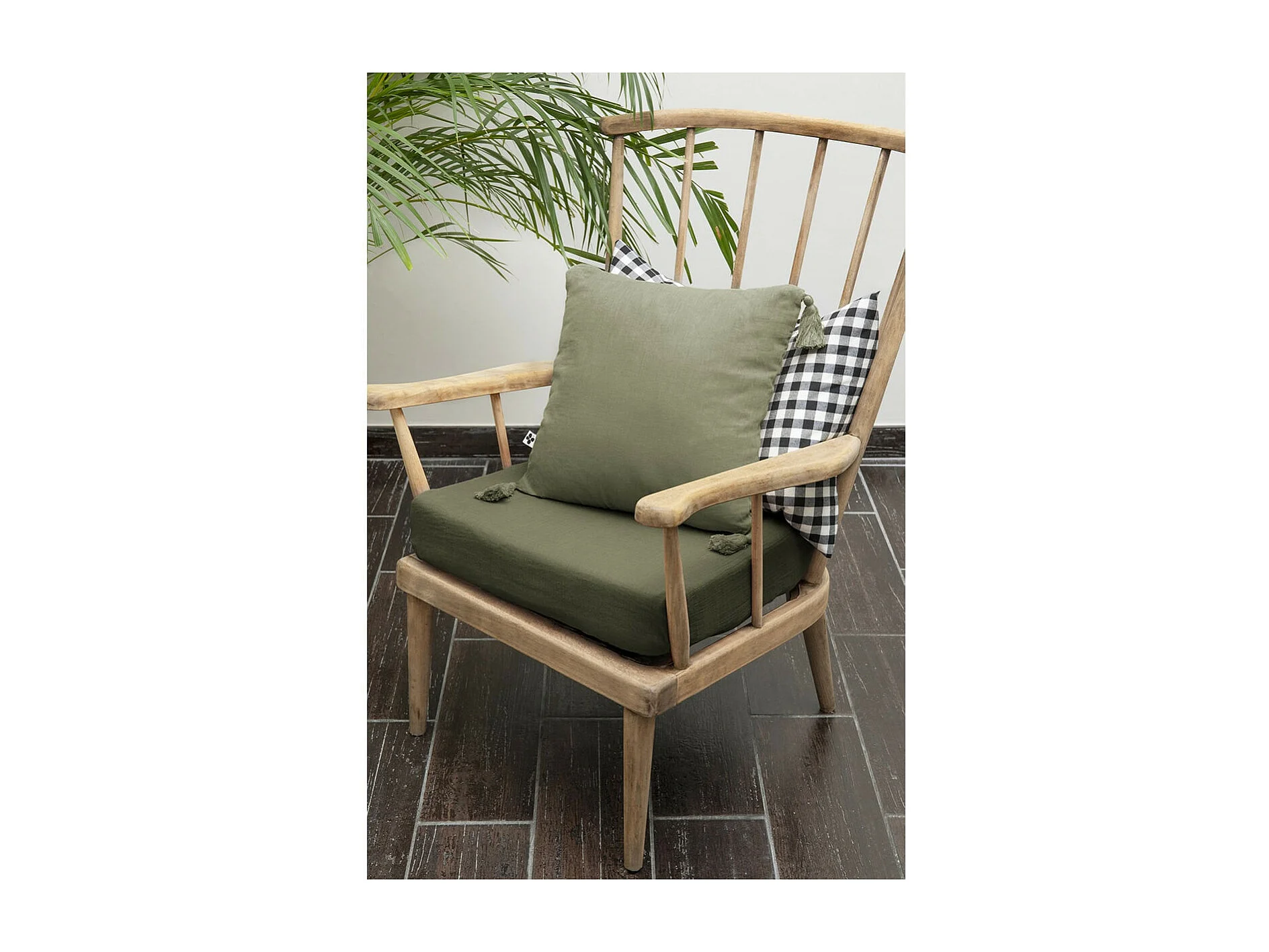 Coussin en coton lavé 40x40 cm SPIRIT kaki, par Soleil d'Ocre