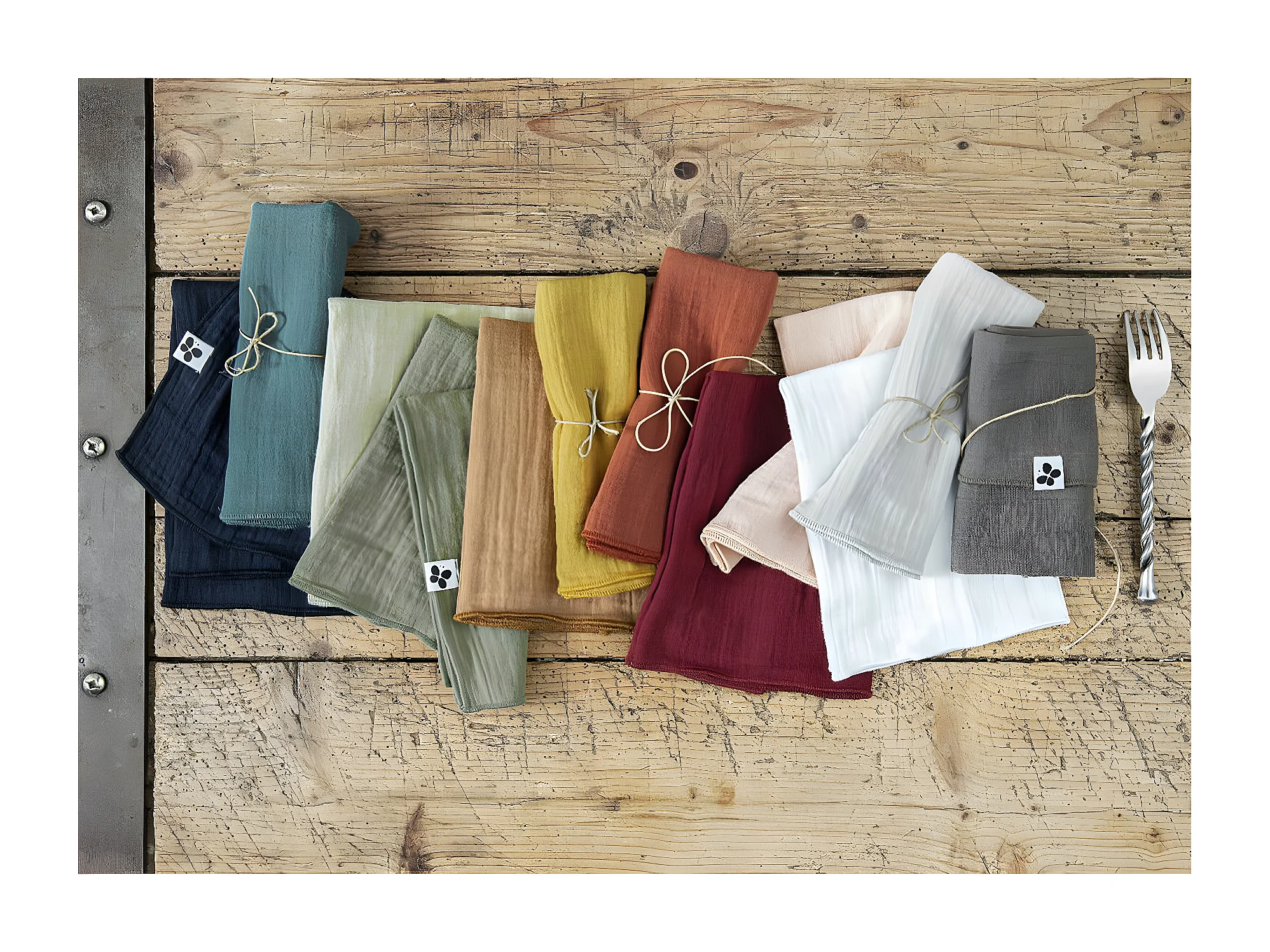 Lot de 6 serviettes 40 x 40 cm en double gaze de coton vert - PEPA