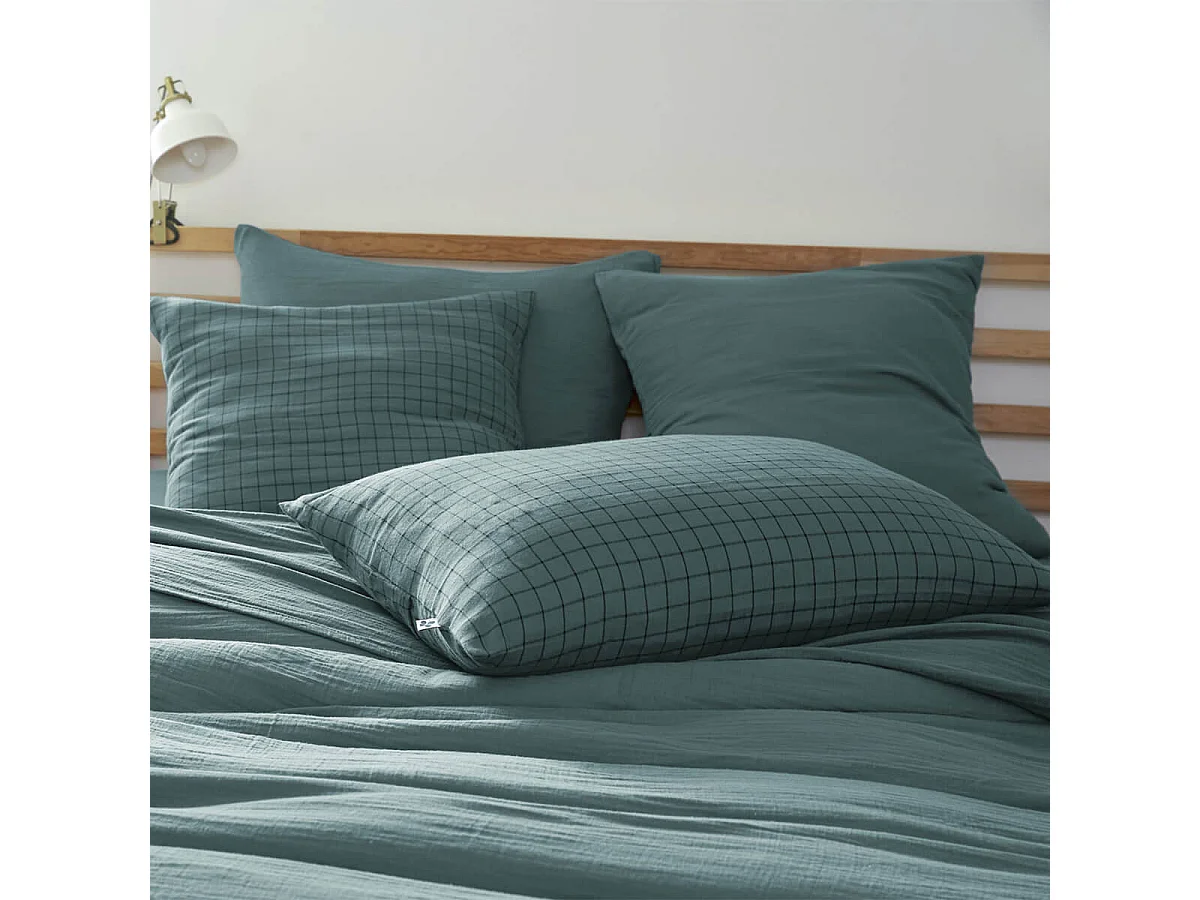 Taie d'oreiller à carreaux double gaze de coton eucalyptus 50x70 cm