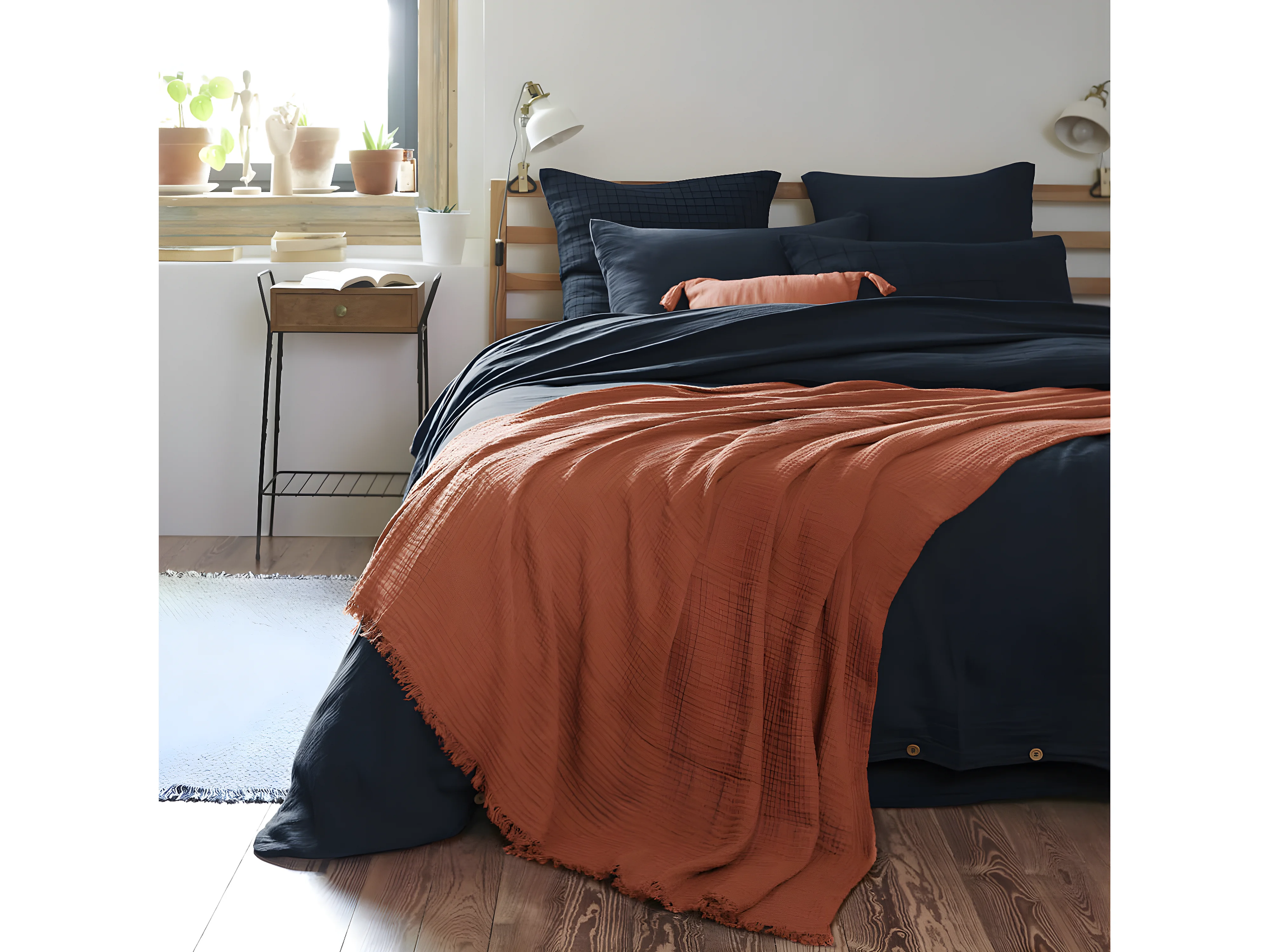Plaid 130 x 160 cm en quadruple gaze de coton terracotta - PEPA 1