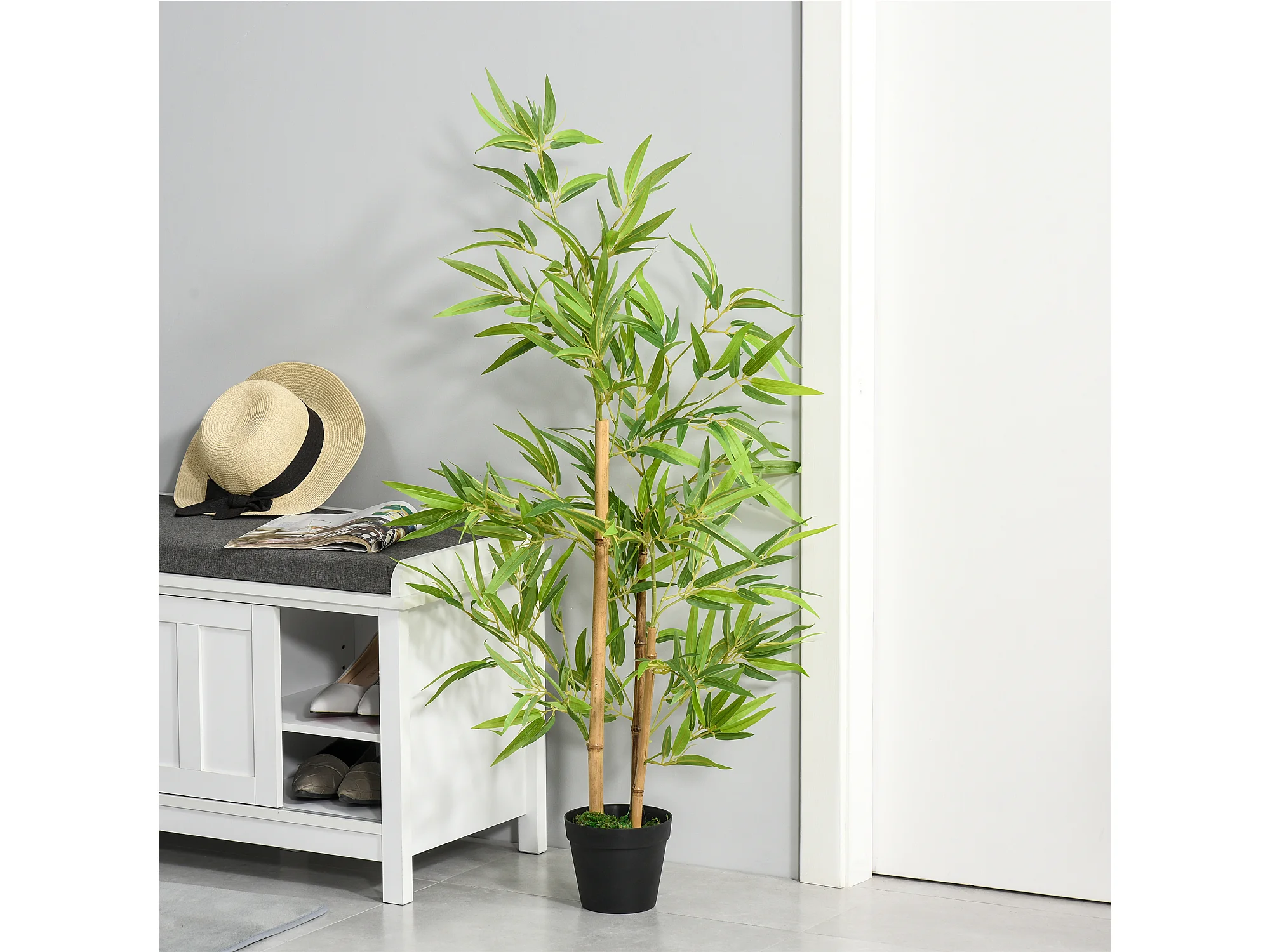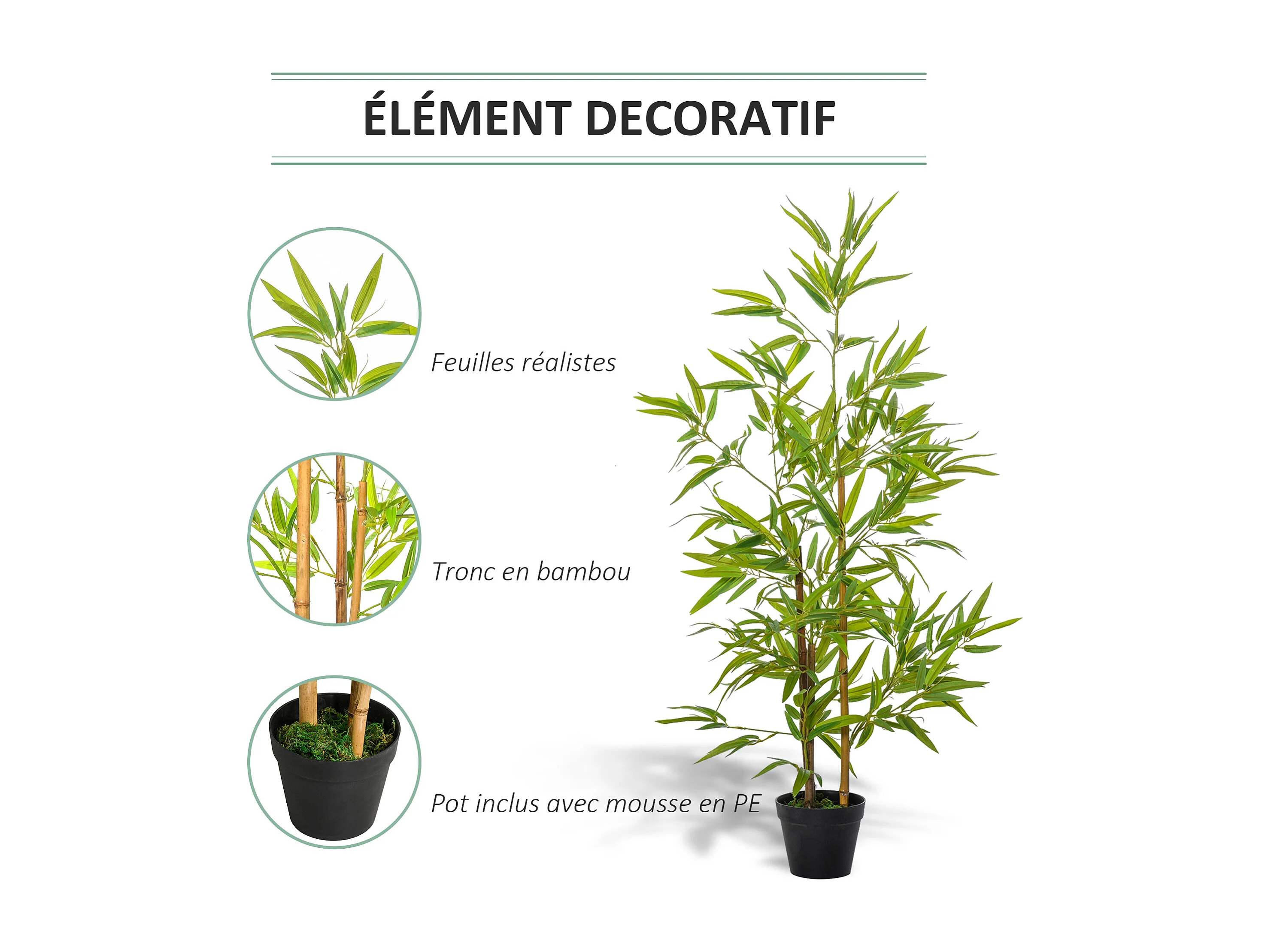 Outsunny Bambou artificiel hauteur 1,2 m 369 feuilles denses réalistes pot inclus noir avec lichen vert