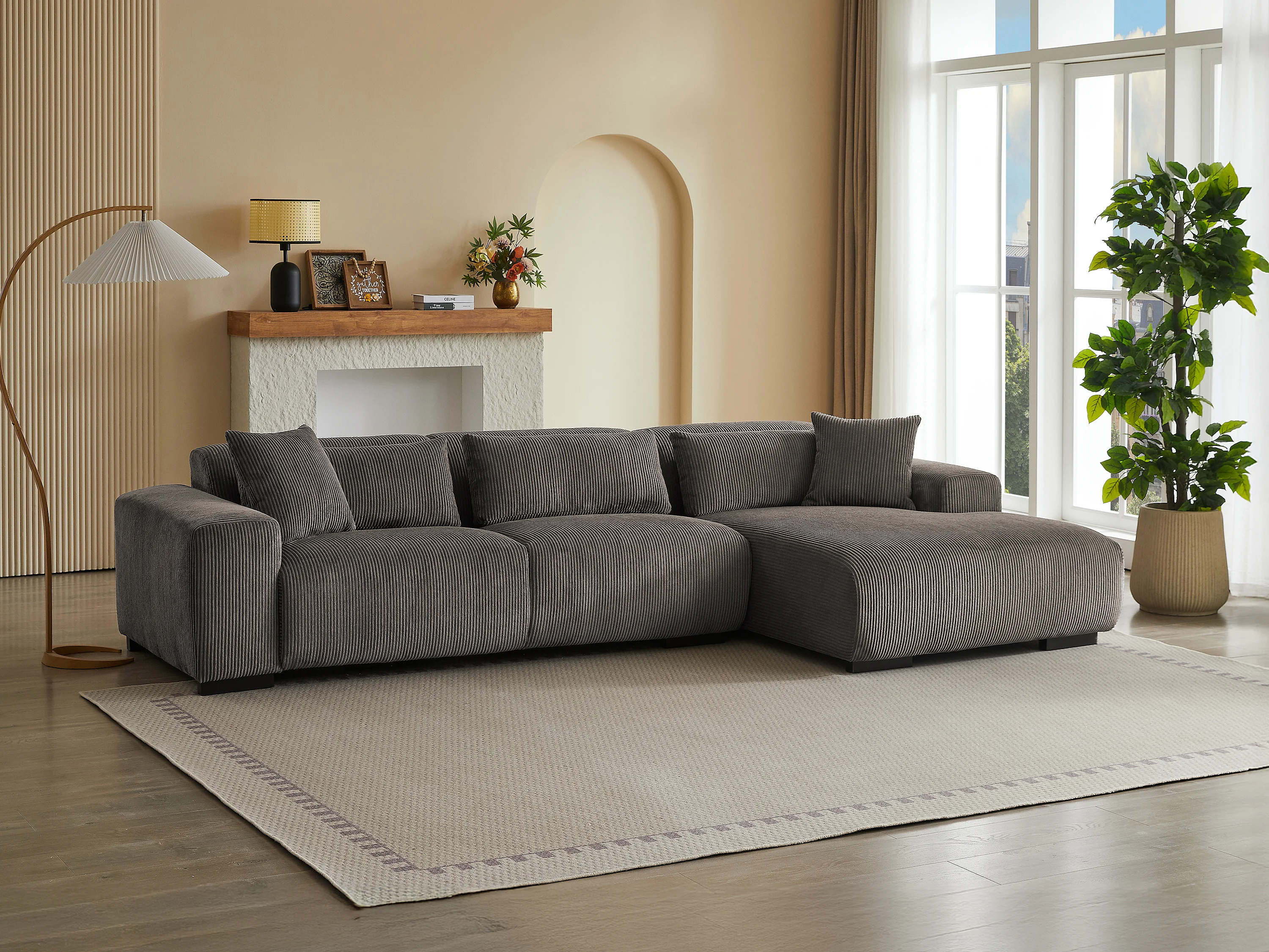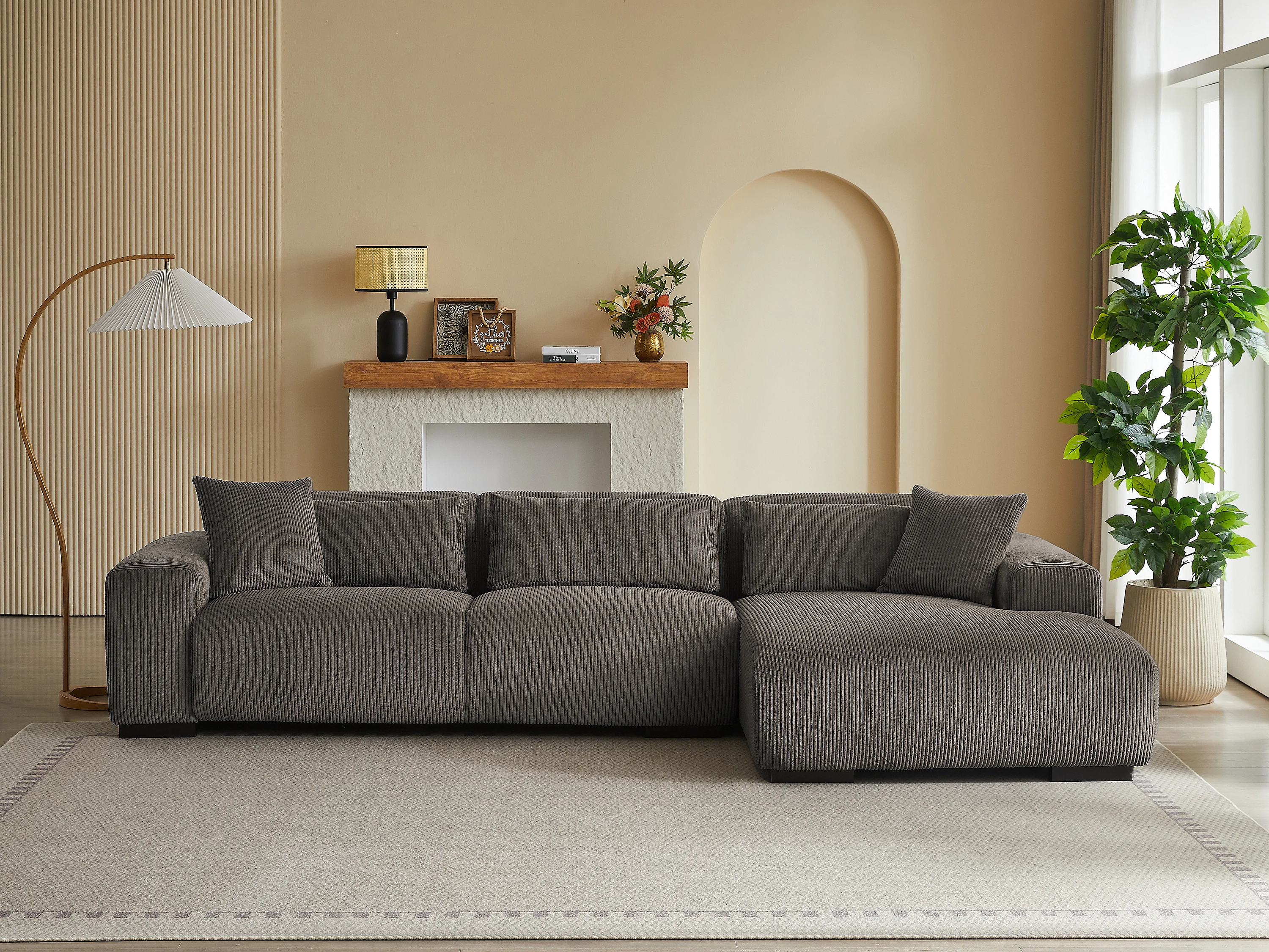 Canapé d'angle droit en velours côtelé taupe OVENTINO de Maison Céphy