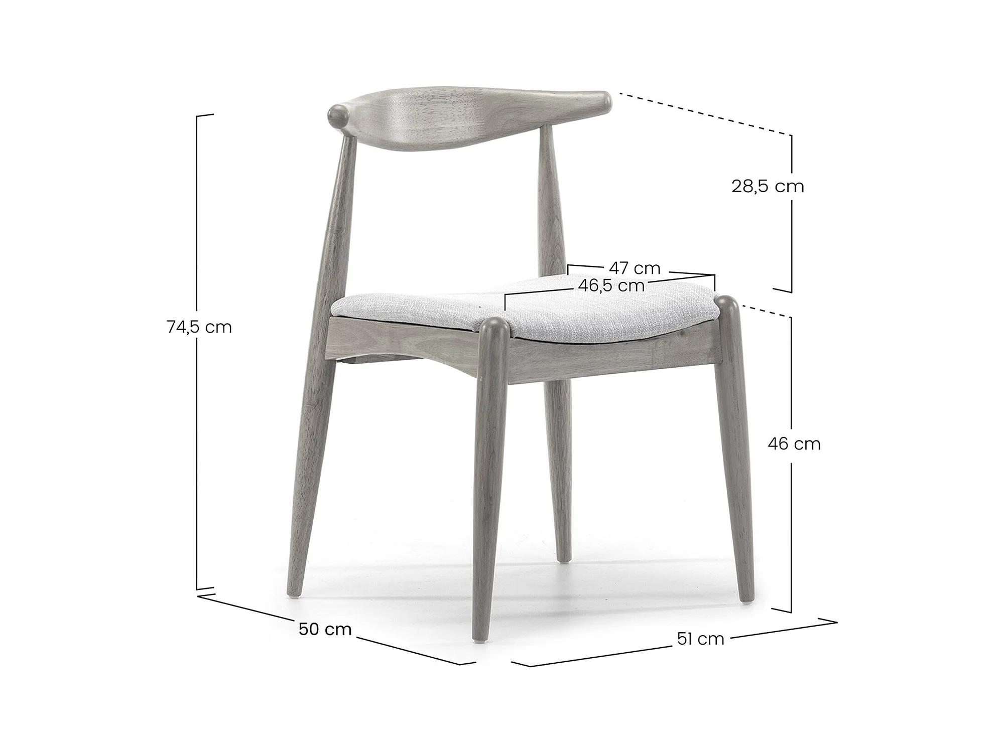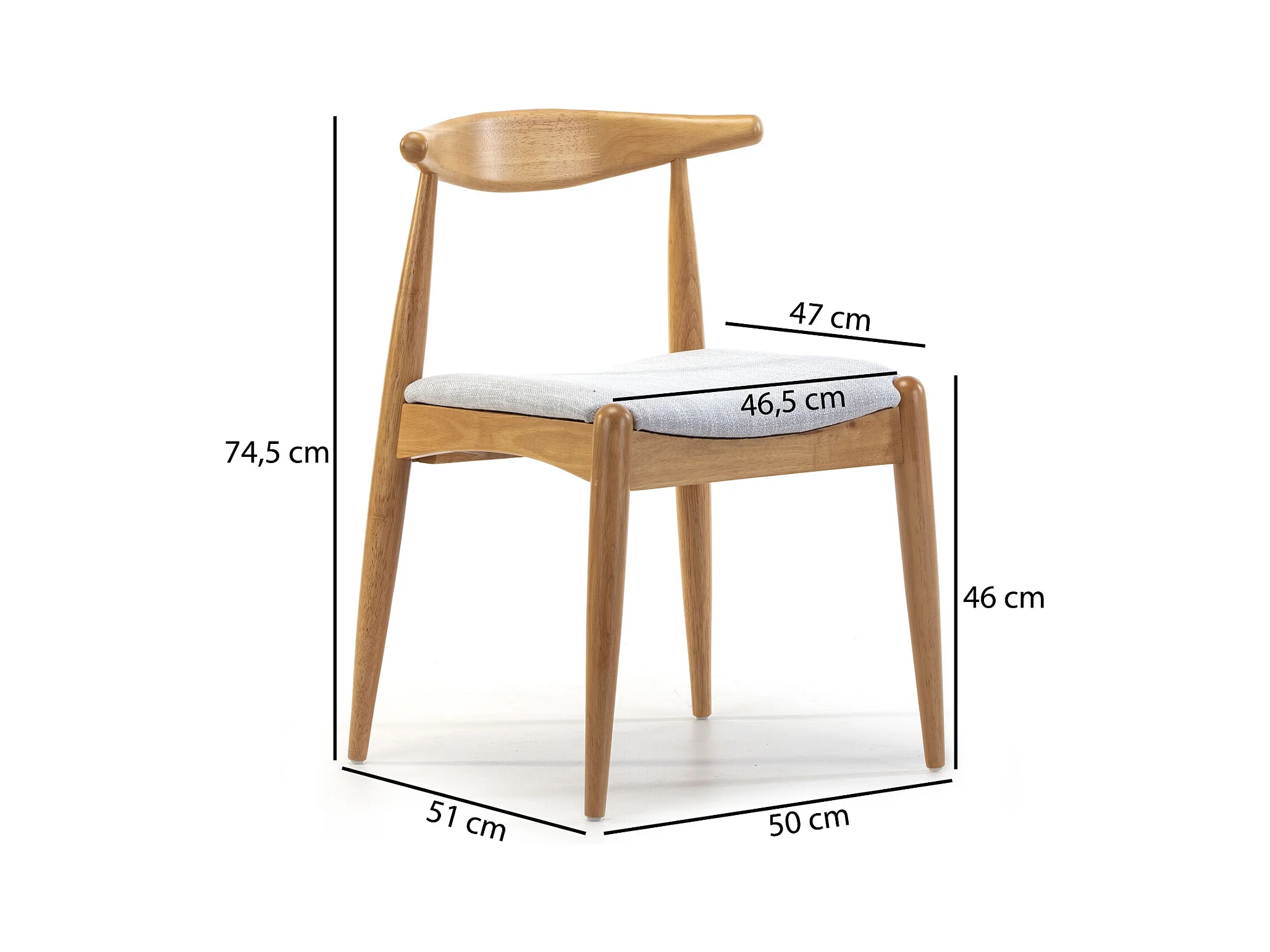 Pack 2 chaises Corzo, Couleur Chêne, Bois Massif, 52,5 cm x 50 cm x 74.5 cm