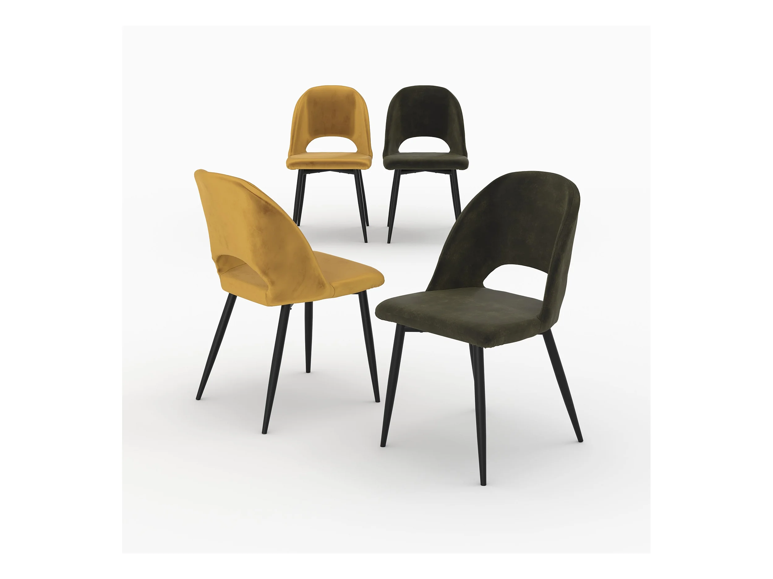 Pack 4 chaises en velours jaune et vert - Pénélope