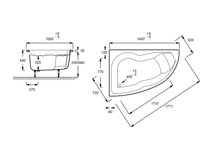 Pack baignoire d'angle 150 x 100 cm JACOB DELAFON Micromega Duo version gauche + tablier de baignoire