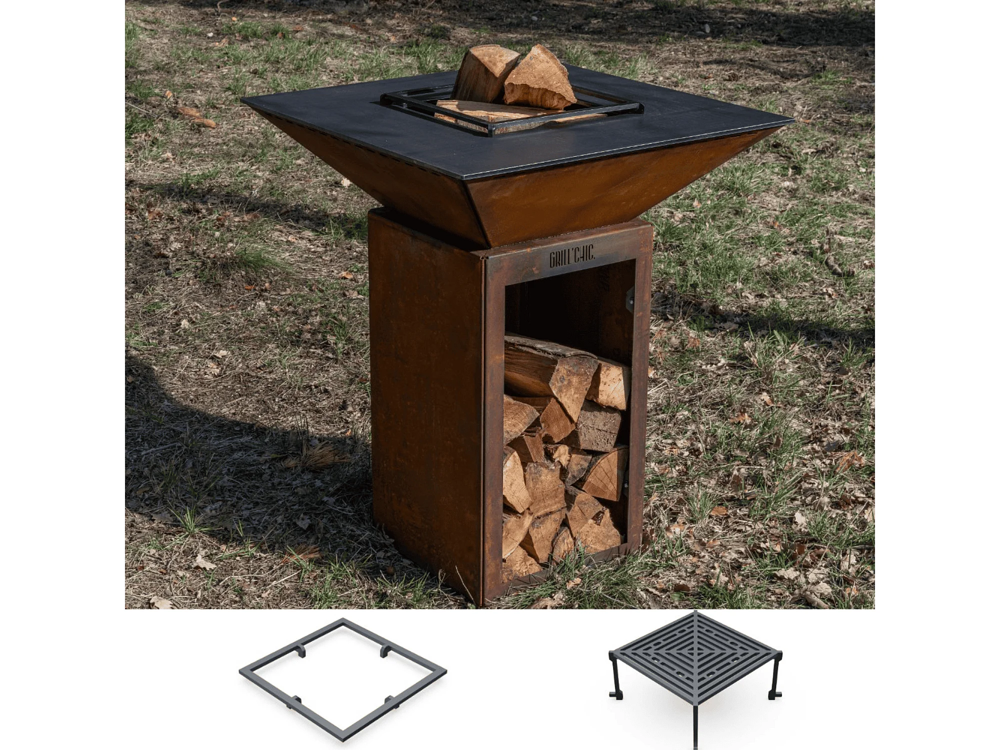 Pack Découverte Brasero CEVENOL Simple Cuve Corten Carré 74x90 cm - Avec rangement bois - Un brasero carré au style naturel pour une cuisine extérieure conviviale
