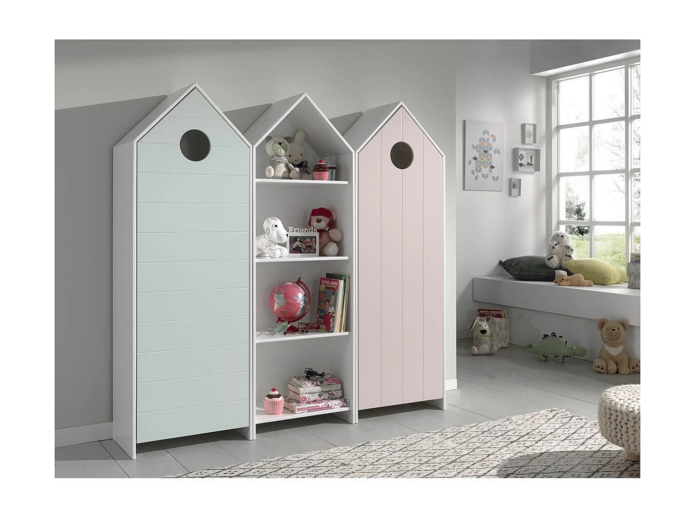 Pack - Étagère Enfant & 2 Armoires "Casami" Blanc, Menthe & Rose