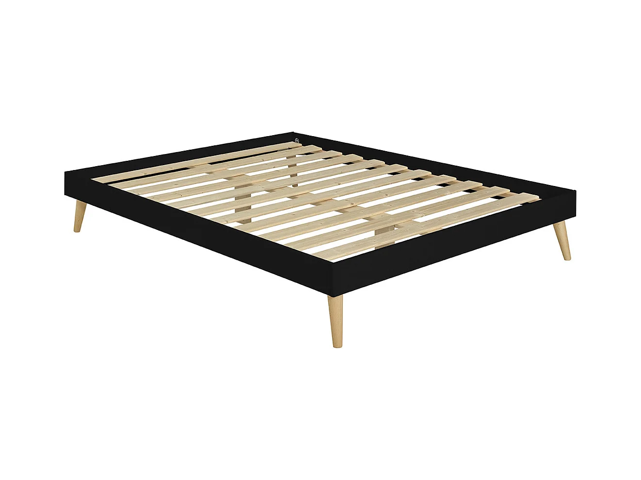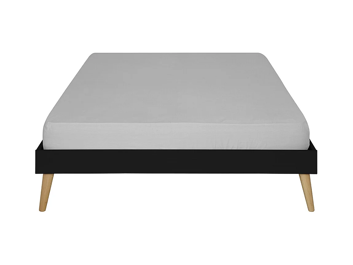 Pack lit 2 places avec pieds et matelas 120x190 cm bois massif noir DARLA