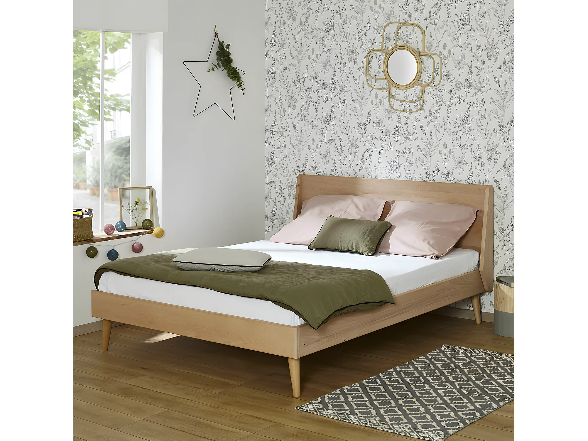 Pack lit avec matelas 160x200 cm bois massif bois naturel MELBA
