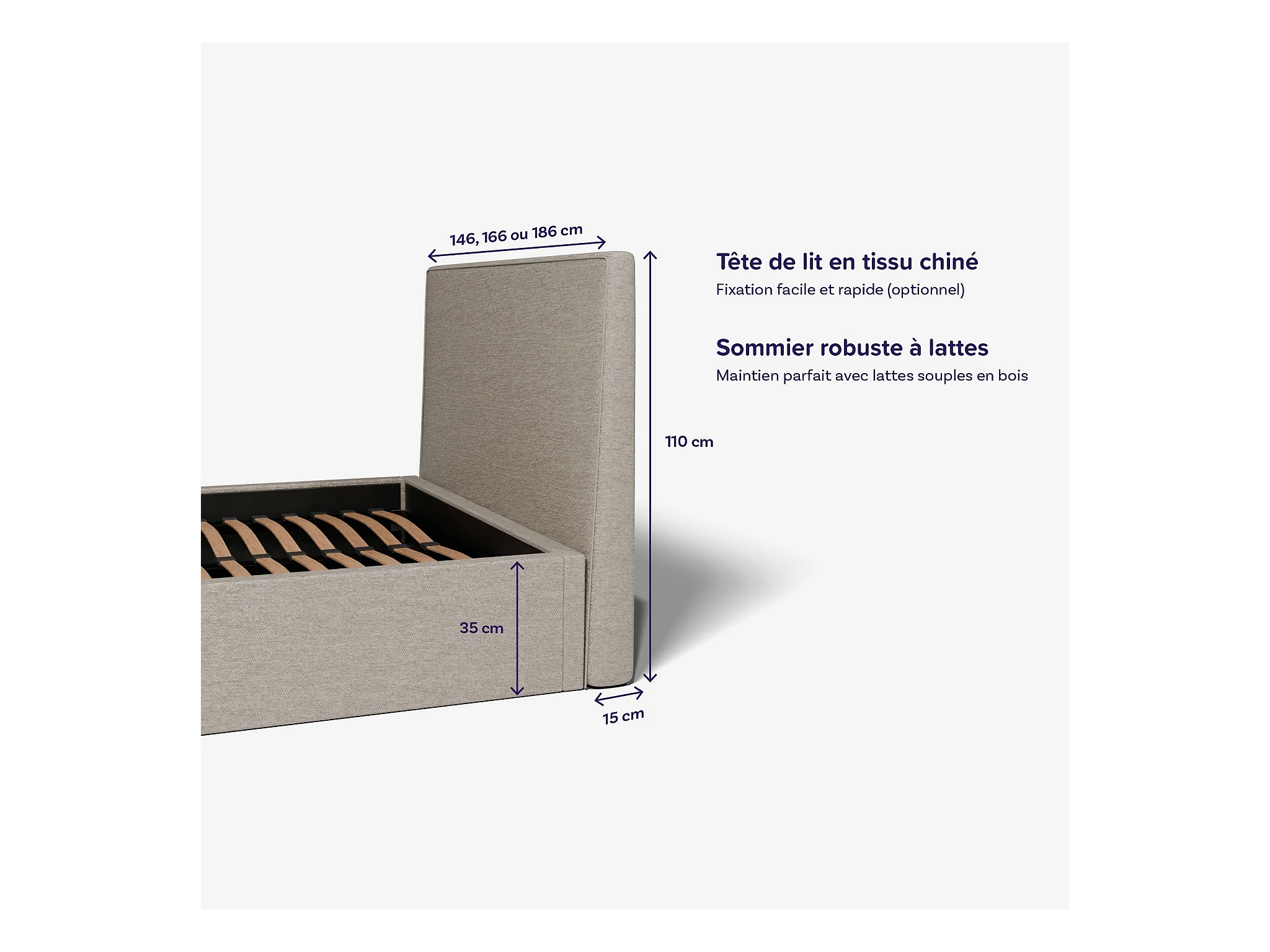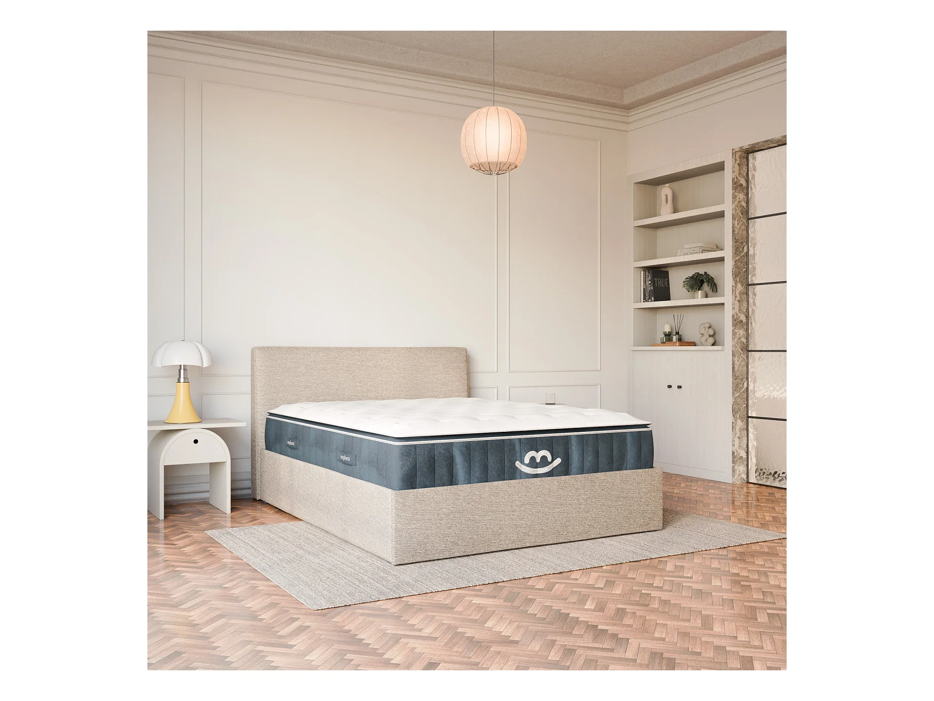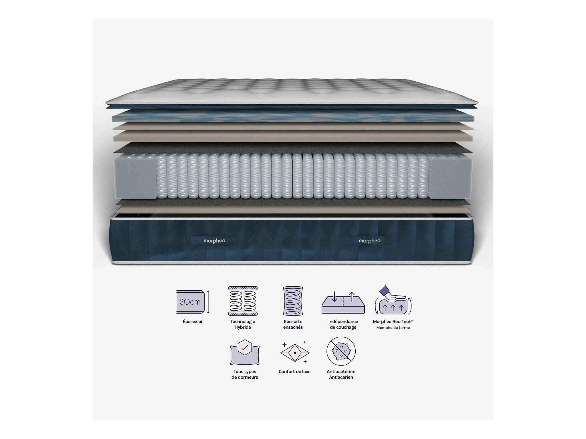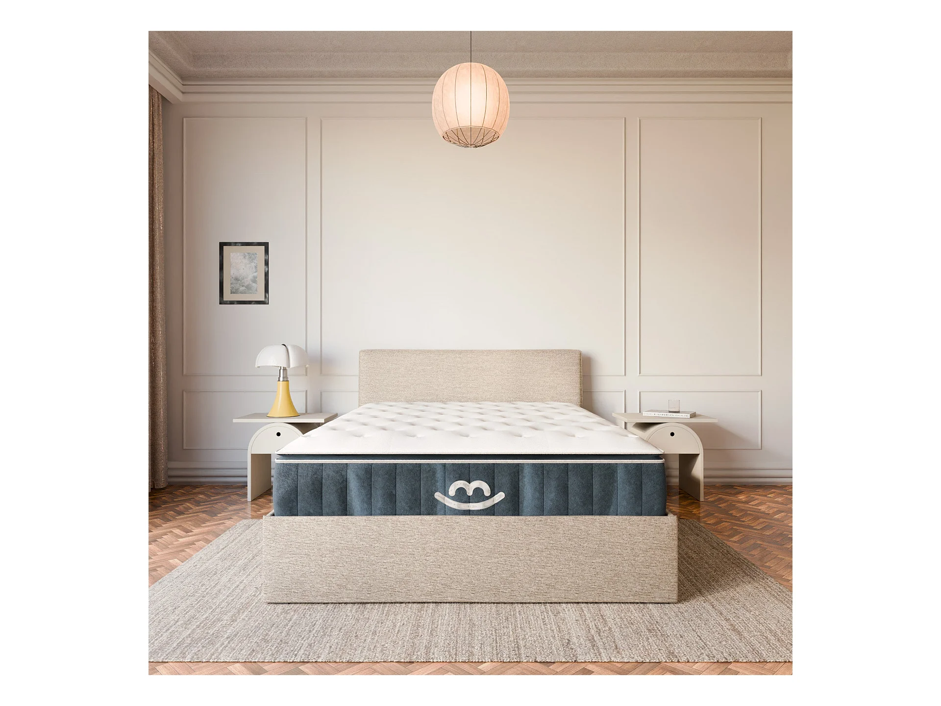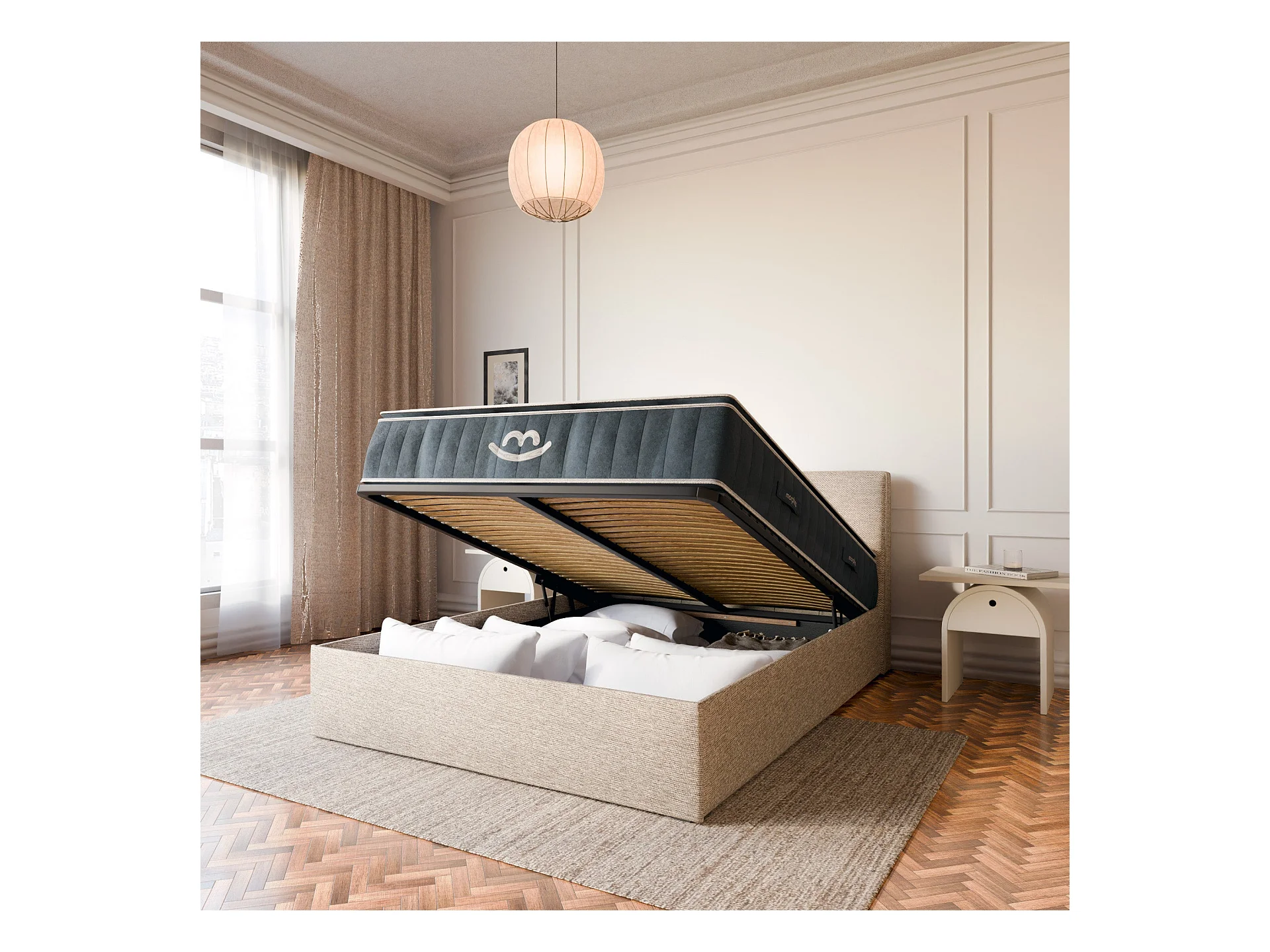 Pack lit coffre et matelas hybride 180x200 épais 30cm