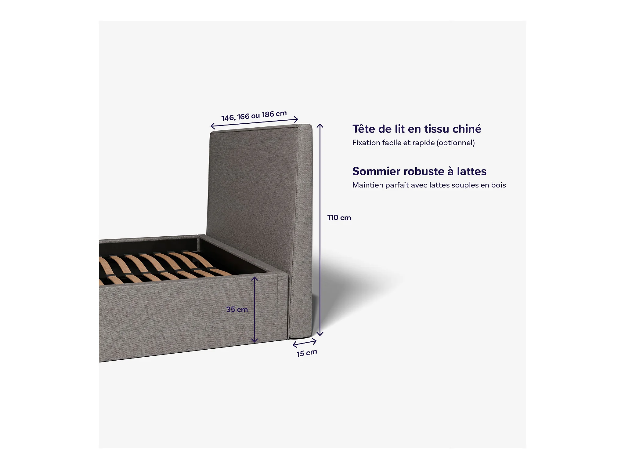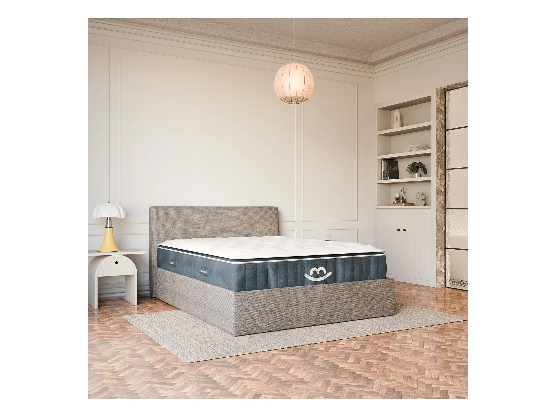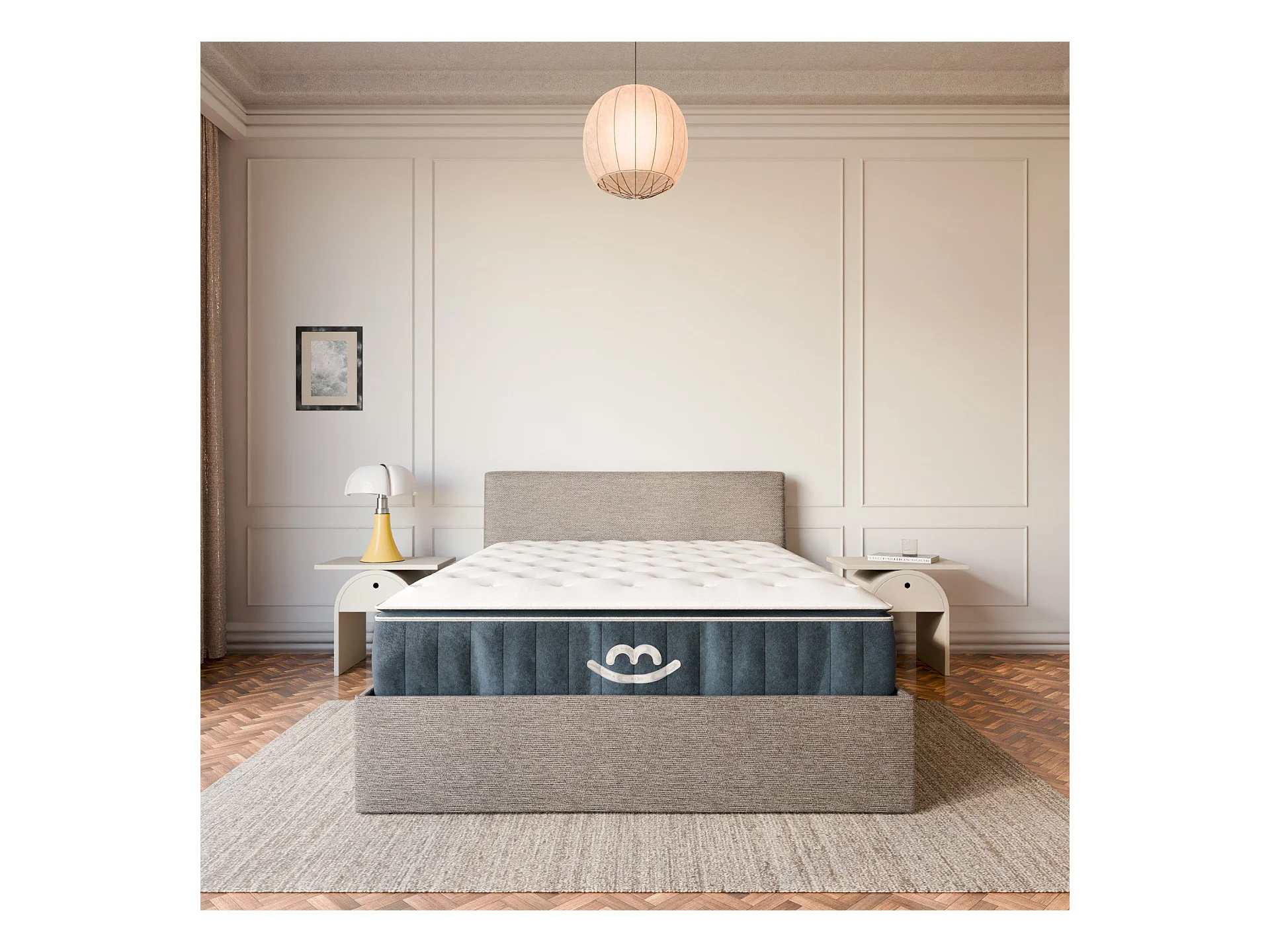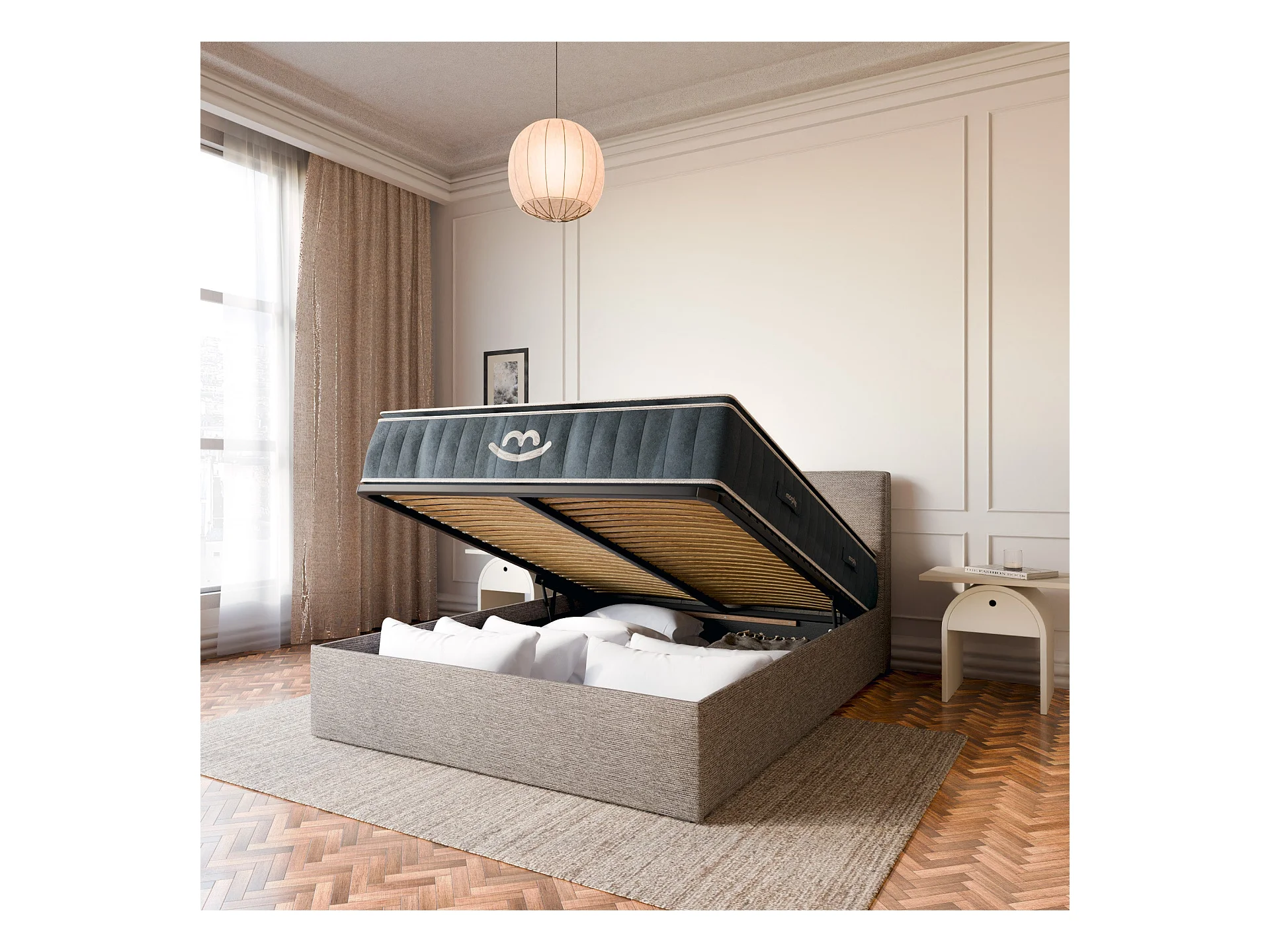 Pack lit coffre et matelas hybride 180x200 épais 30cm