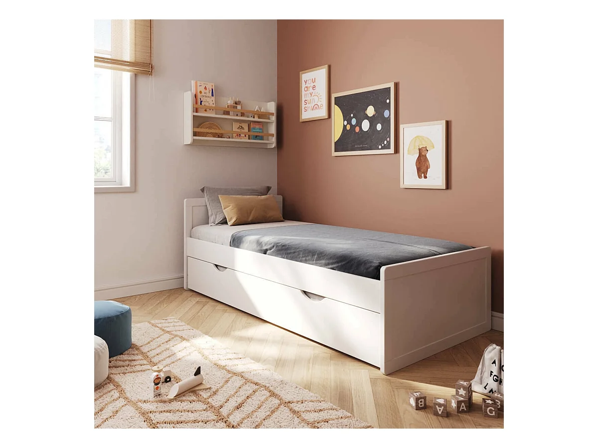 Pack lit enfant gigogne avec matelas 90x190 cm bois massif bois PETER