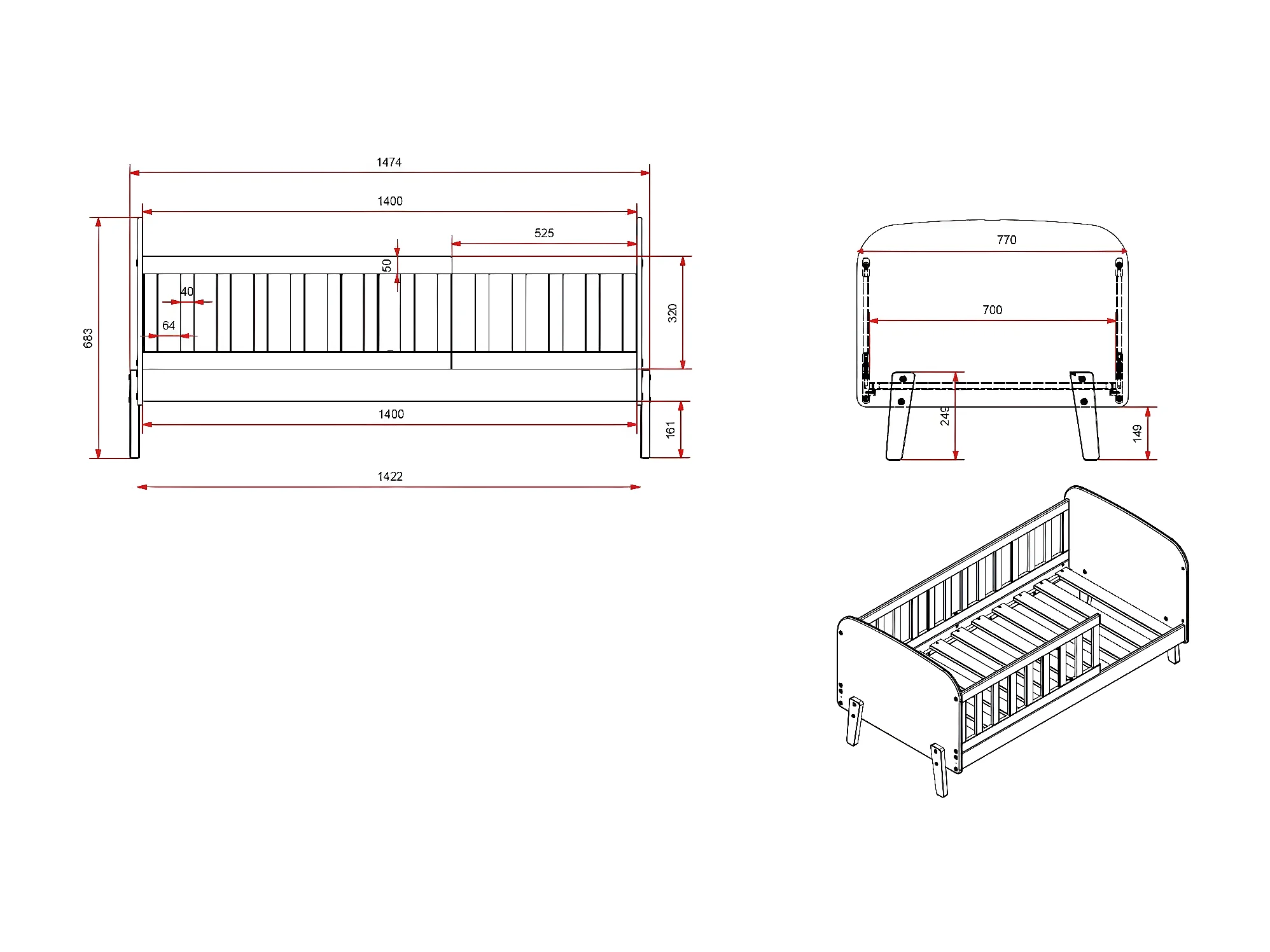 Pack - Lit Enfant & Tiroir de Lit "Kiddy" 70x140cm Blanc