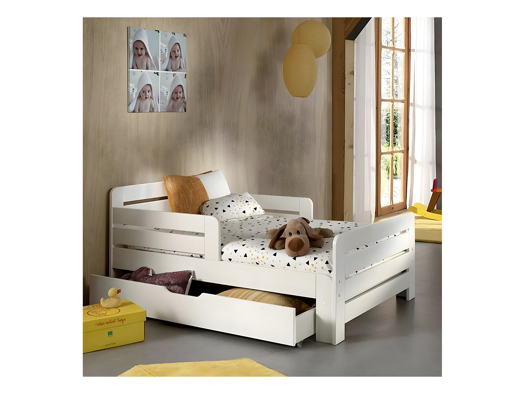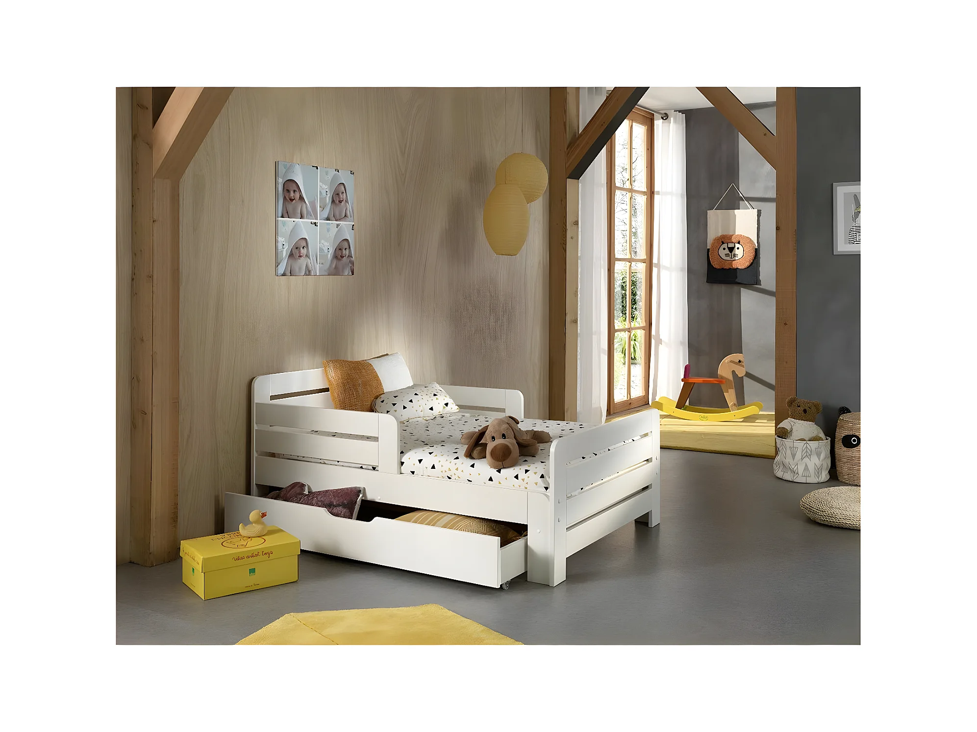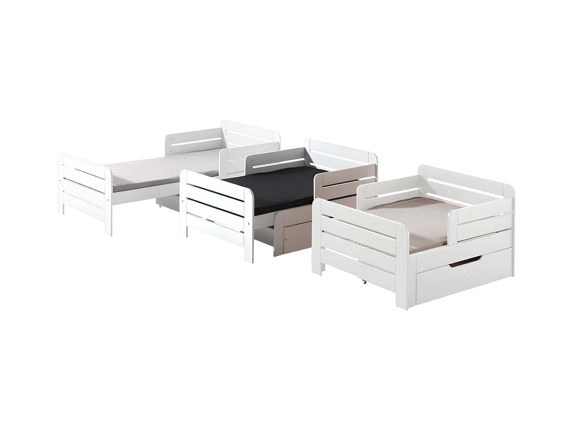 Pack - Lit Évolutif Enfant, Tiroir & Matelas "Jumper" 90x140cm Blanc