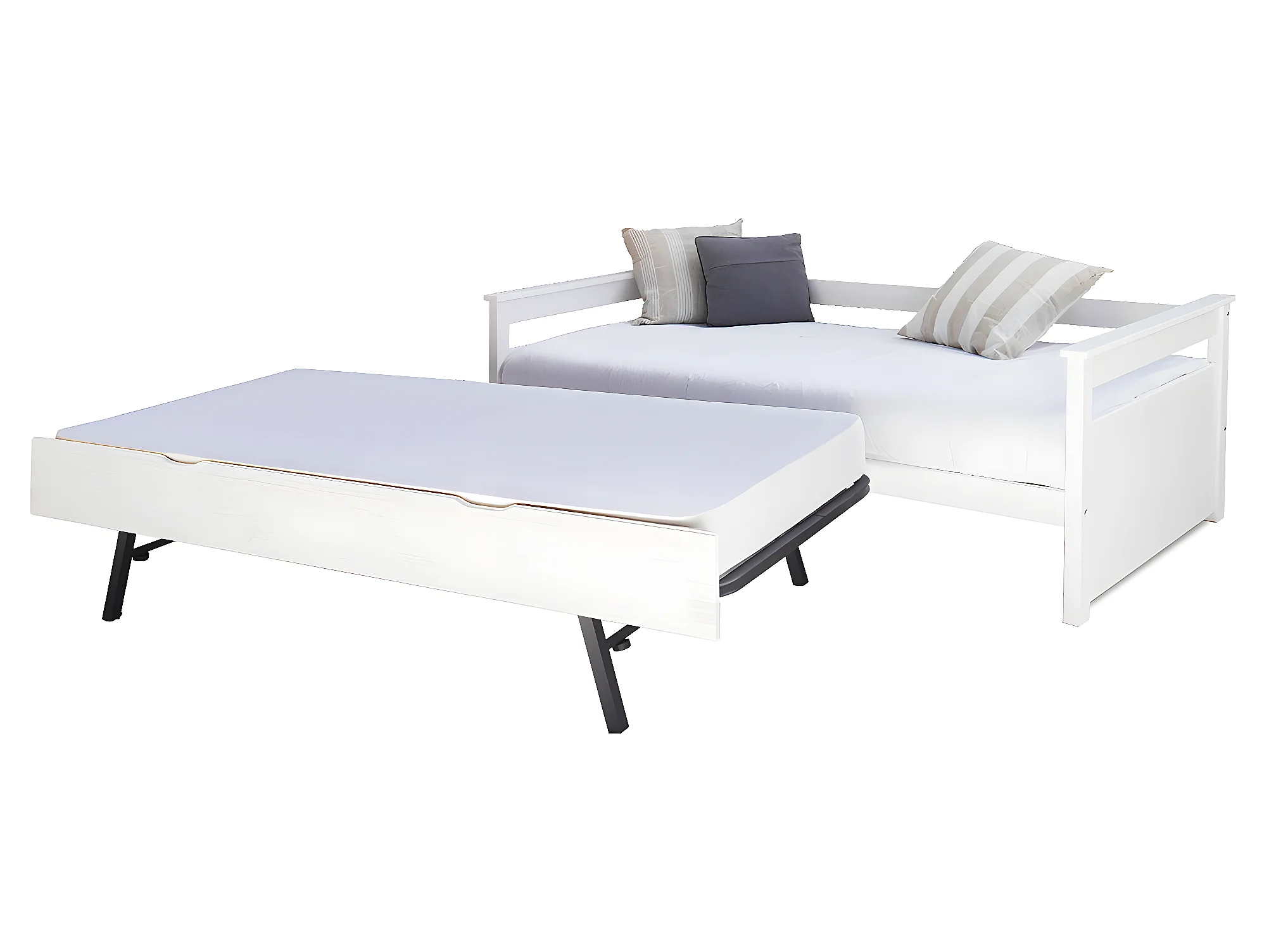 Pack lit gigogne avec 2 matelas 80x190 cm bois massif blanc IZAO