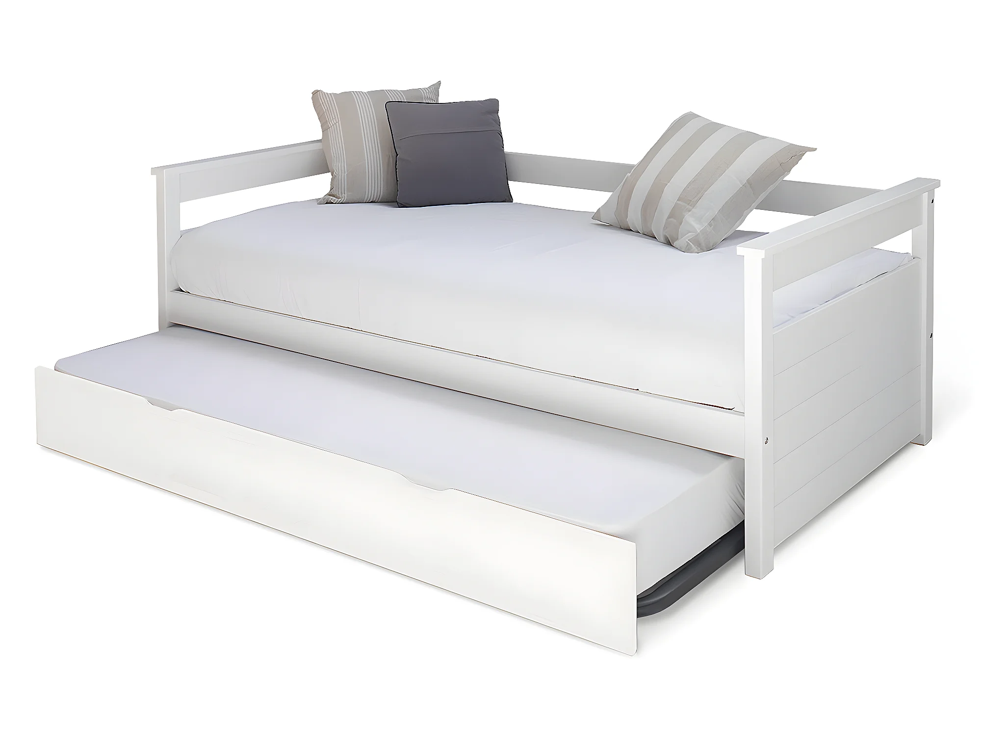 Pack lit gigogne avec 2 matelas 90x200 cm bois massif blanc IZAO