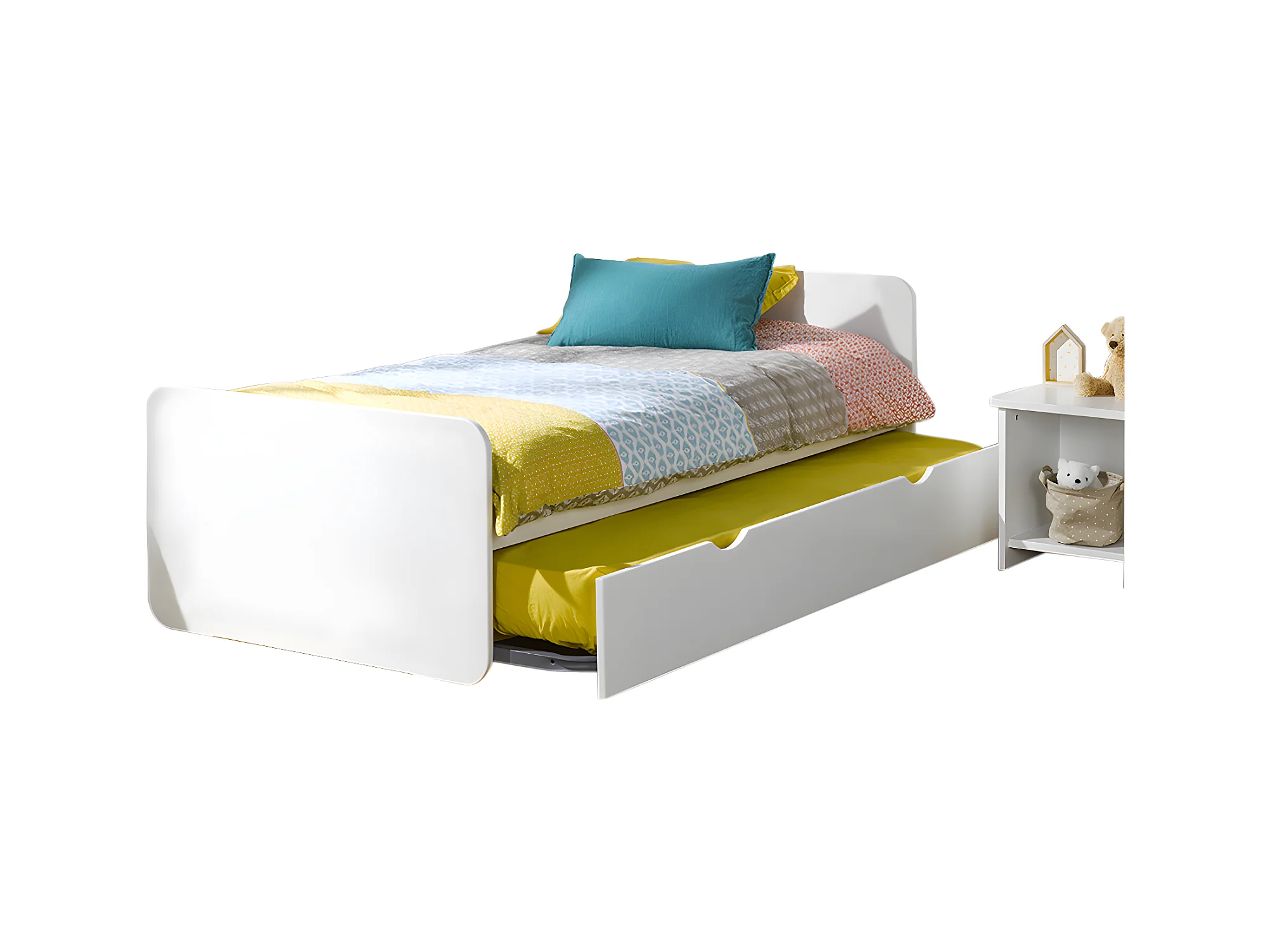 Pack lit gigogne avec 2 matelas 90x190 cm bois massif blanc LUPIN