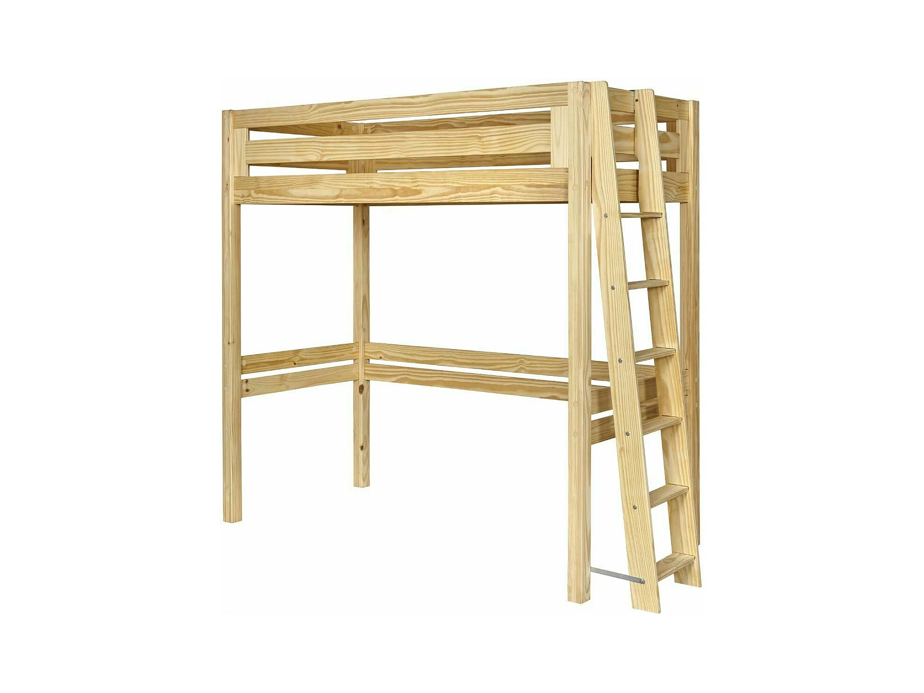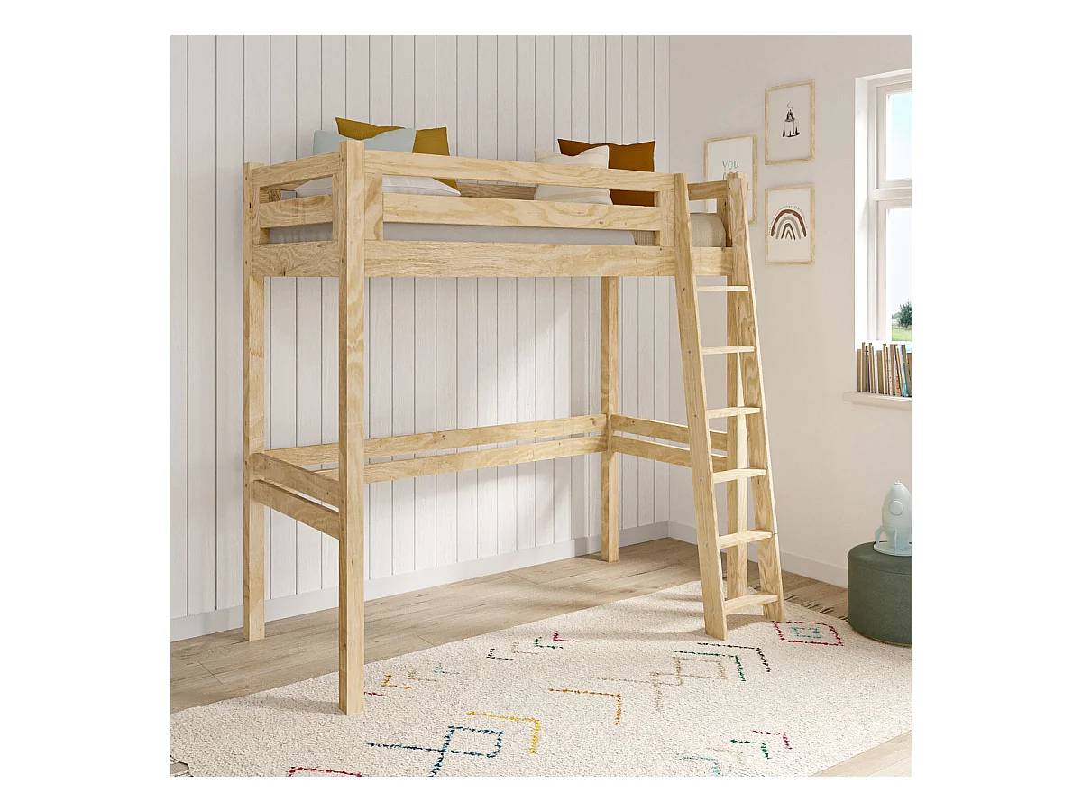 Pack lit mezzanine 1 place avec matelas 90x190 cm bois massif bois naturel ORSAI