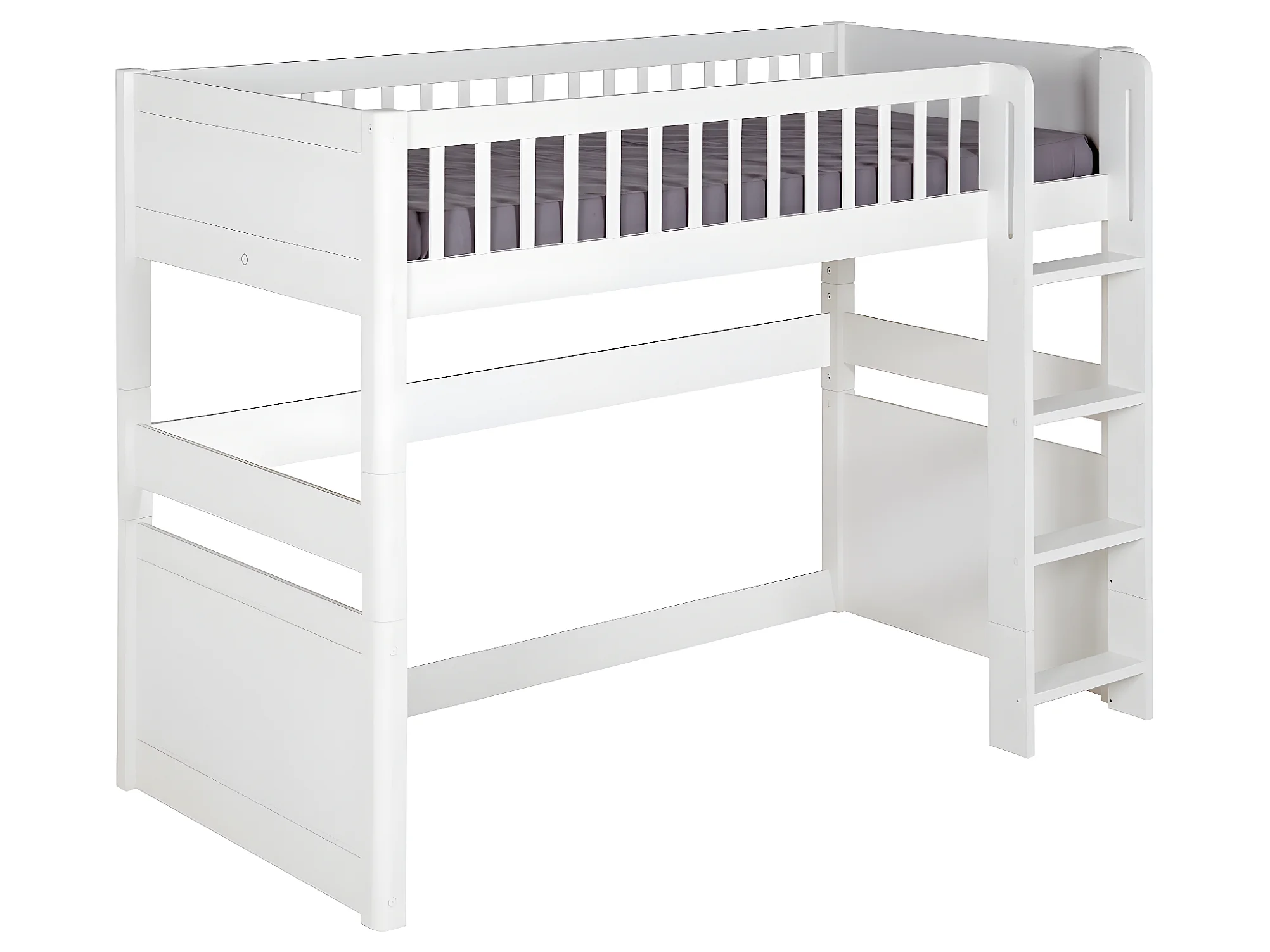 Pack lit mezzanine avec matelas 90x190 cm bois massif blanc VICTORIA