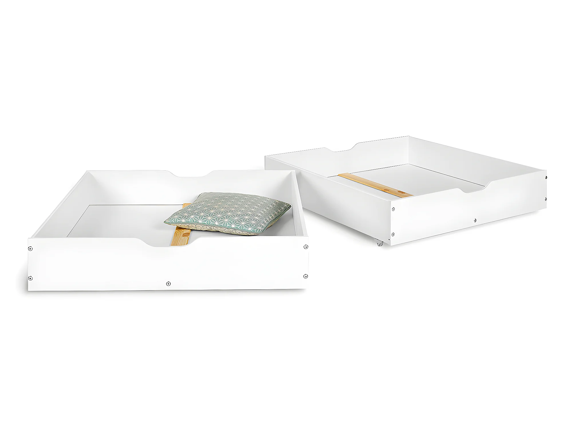 Pack lit superposé séparable avec tiroirs et 2 matelas 80x190 cm bois massif blanc AARON