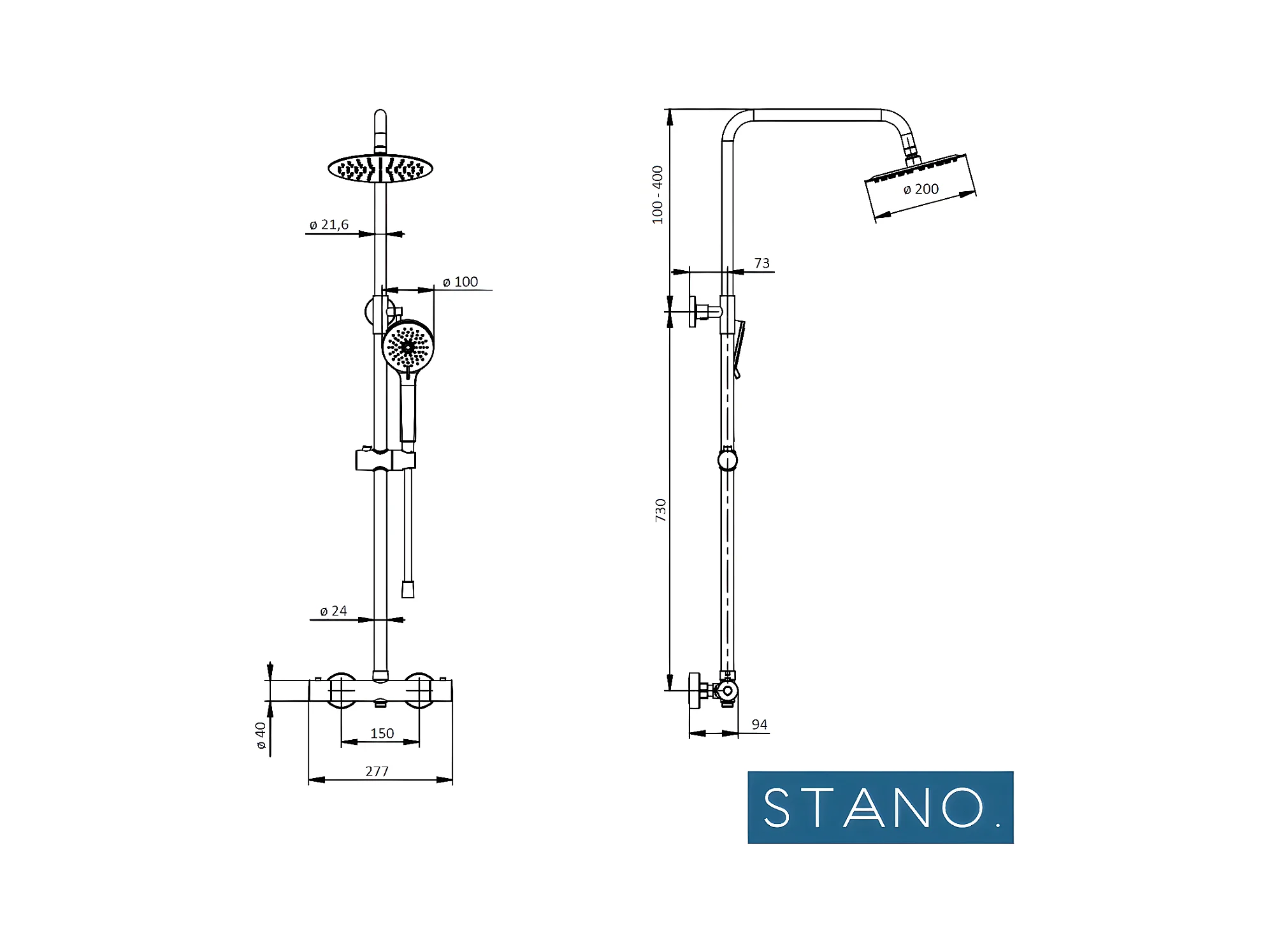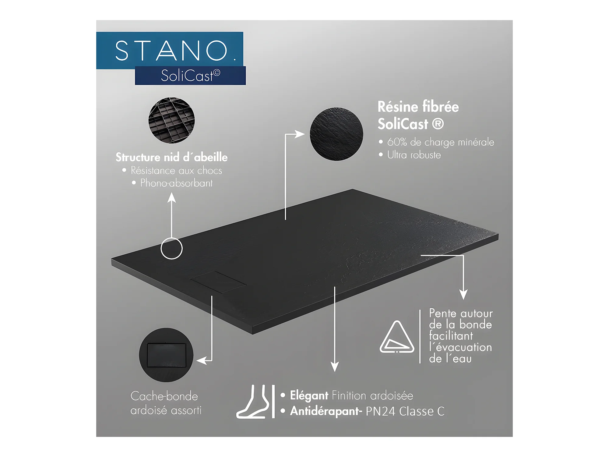 Pack Receveur de douche 80 x 120 cm extra plat gris + Colonne de douche thermostatique
