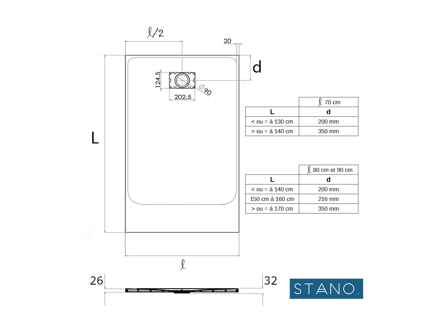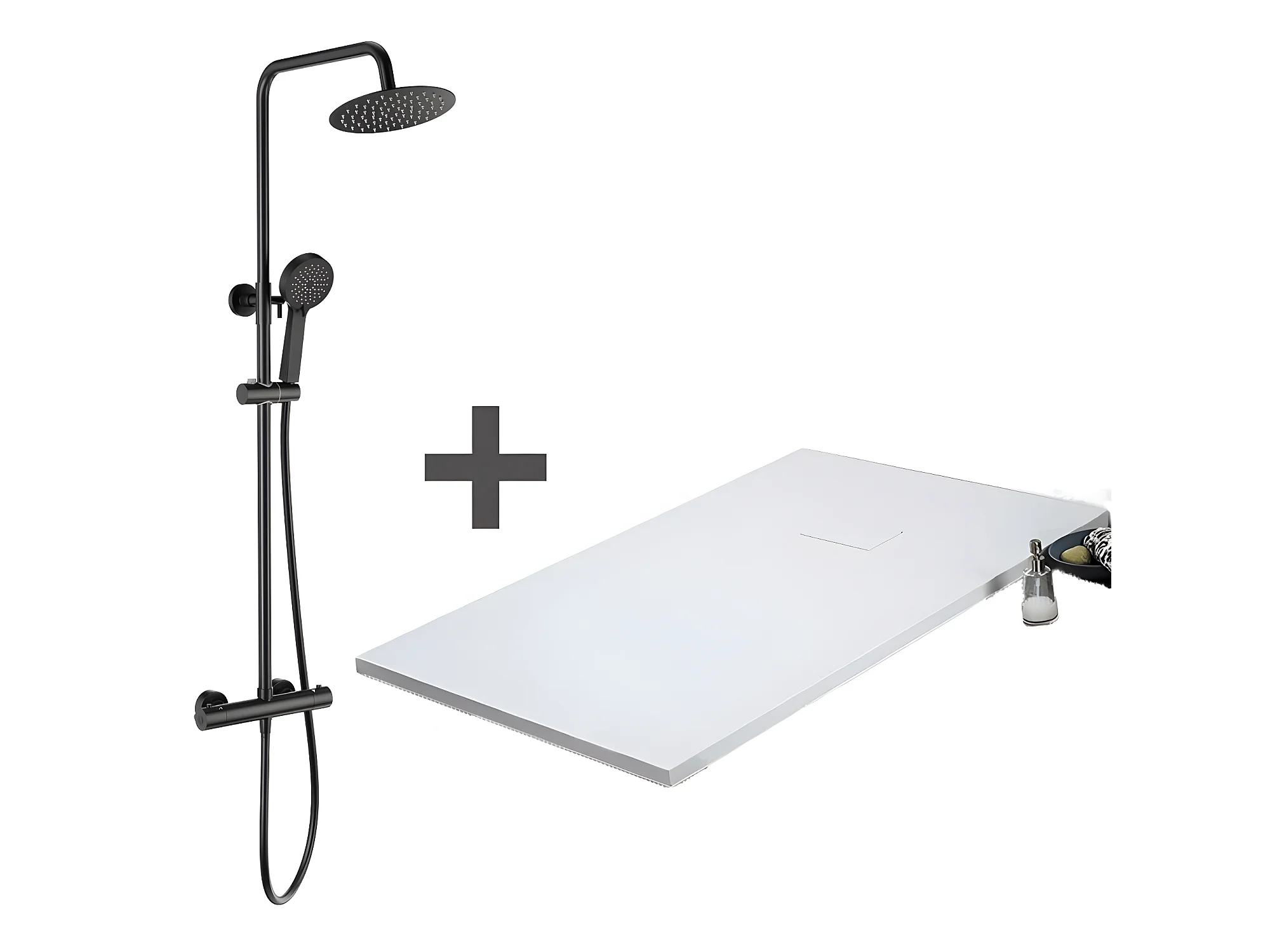 Pack Receveur de douche 80 x 80 cm extra plat blanc + Colonne de douche thermostatique