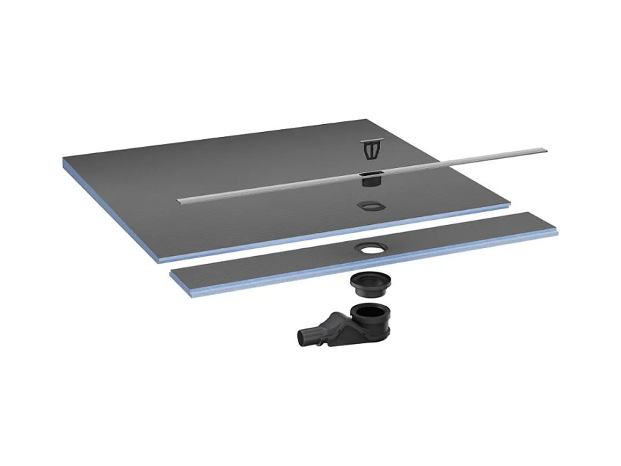 Pack receveur de douche pré-penté 164 x 120 x 4,7 cm WEDI Fundo Flex béton +bonde horizontale+écoulement+support+colle+kit étanche