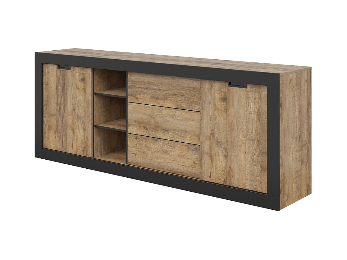 Pack Salon Loft MEUNIER – Meuble TV, buffet & table basse en Chêne Samdal & Noir Mat