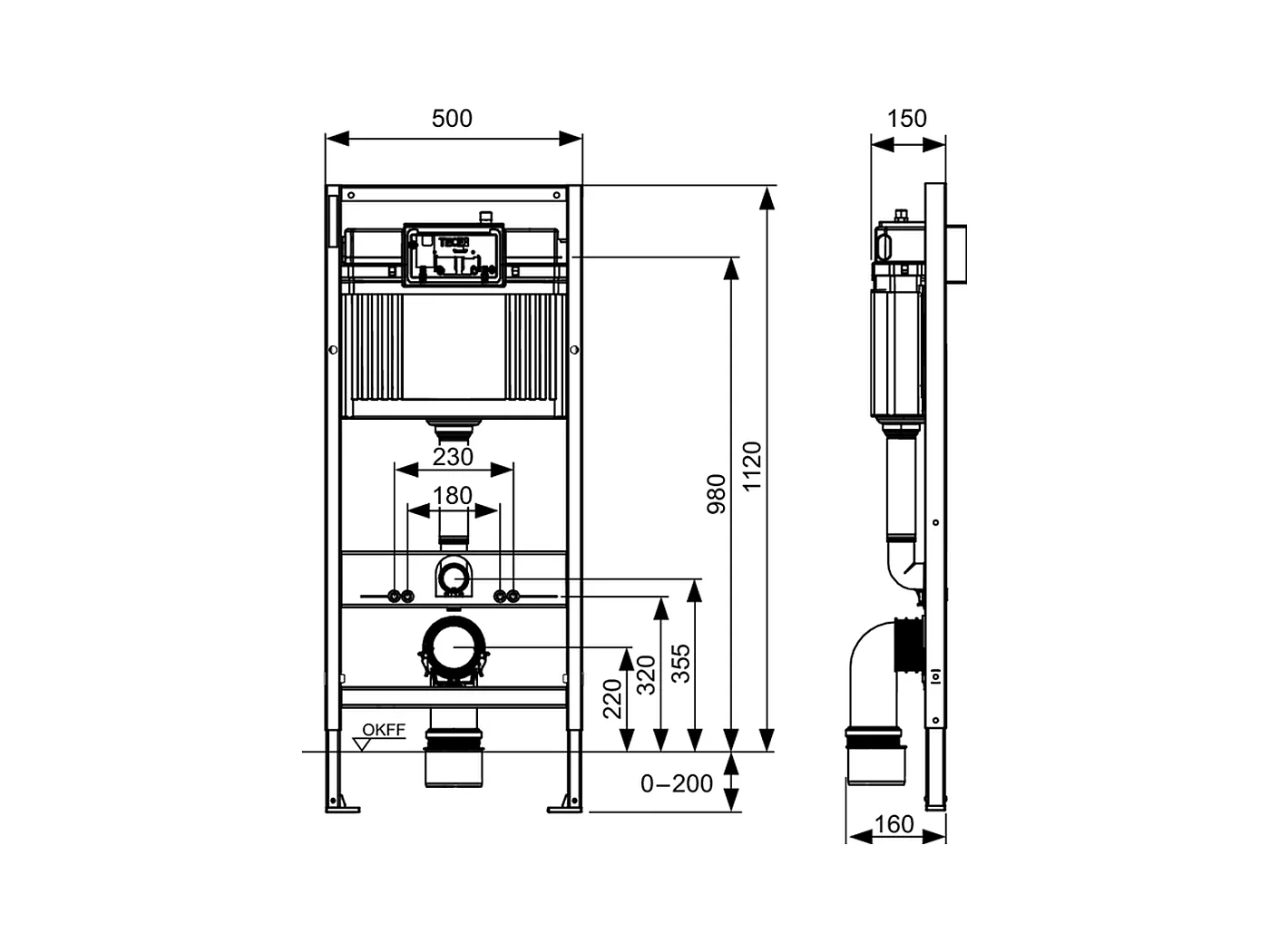 Pack WC : élément de pré-montage TECEbase + WC Rolo noir + tapis d'isolation acoustique + plaque de commande en blanc