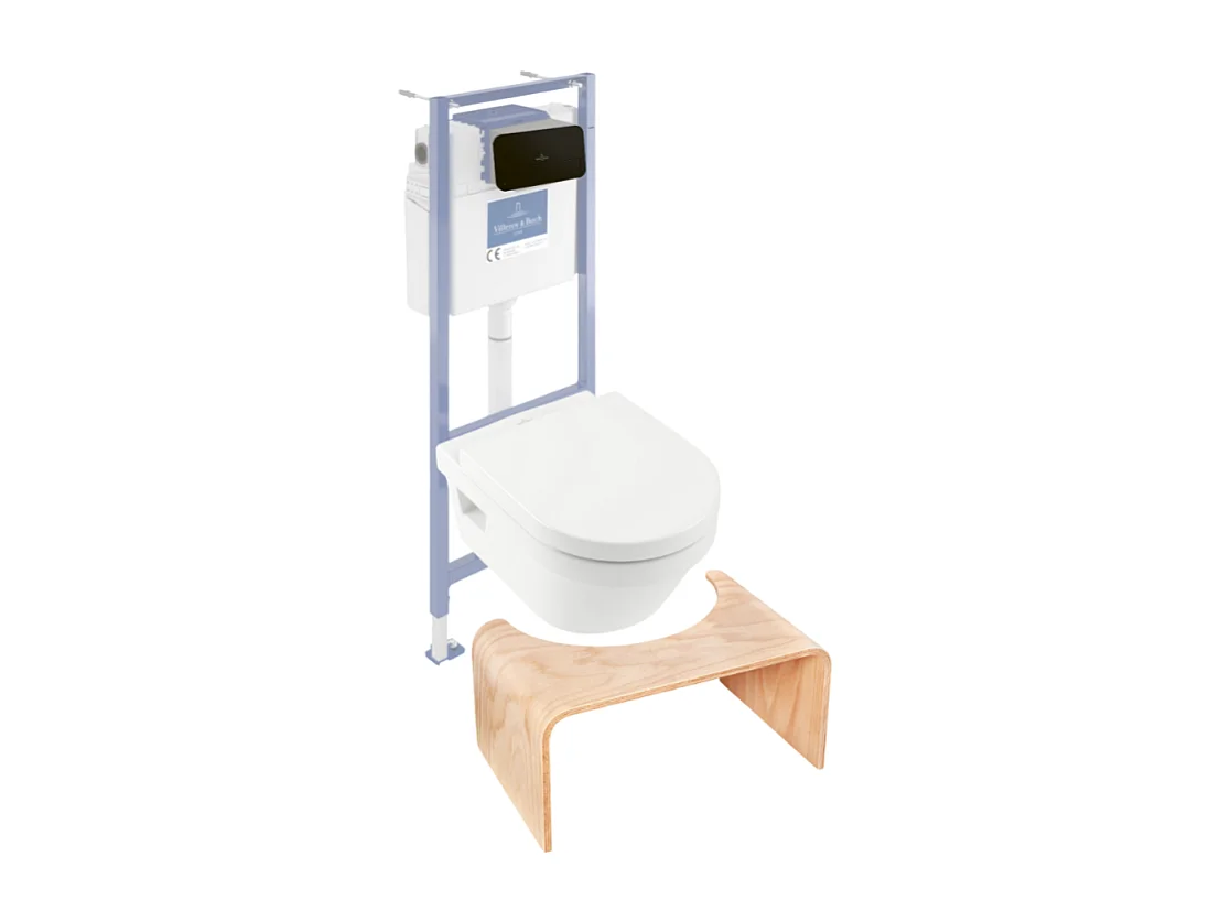 Pack WC sans bride VILLEROY ET BOCH Architectura abattant + bâti-support sol et mur + plaque noir mat + Tabouret bois