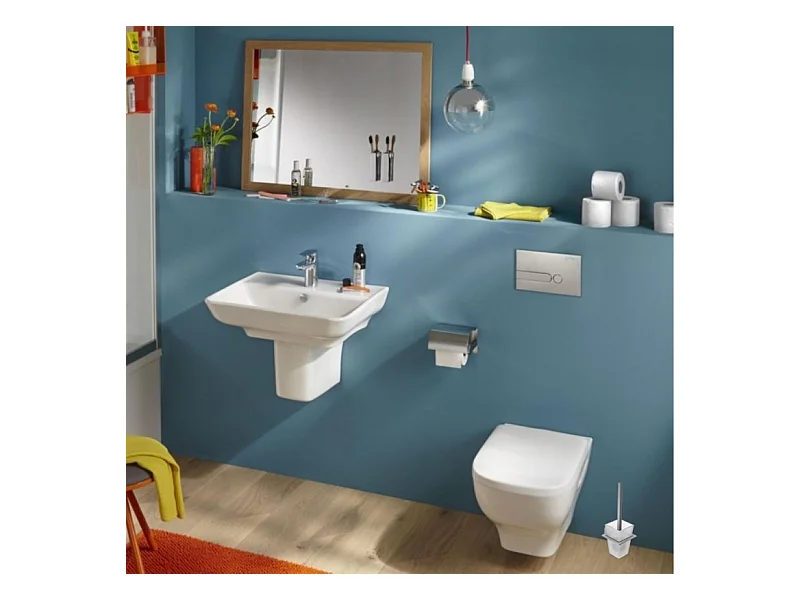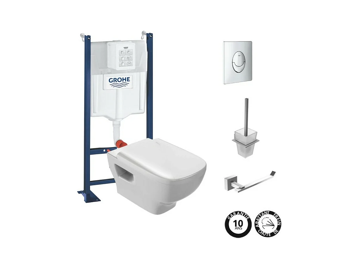 Pack WC suspendu sans bride JACOB DELAFON Struktura + Bati-support GROHE + plaque Start chrome + porte-balai + porte-rouleau carré