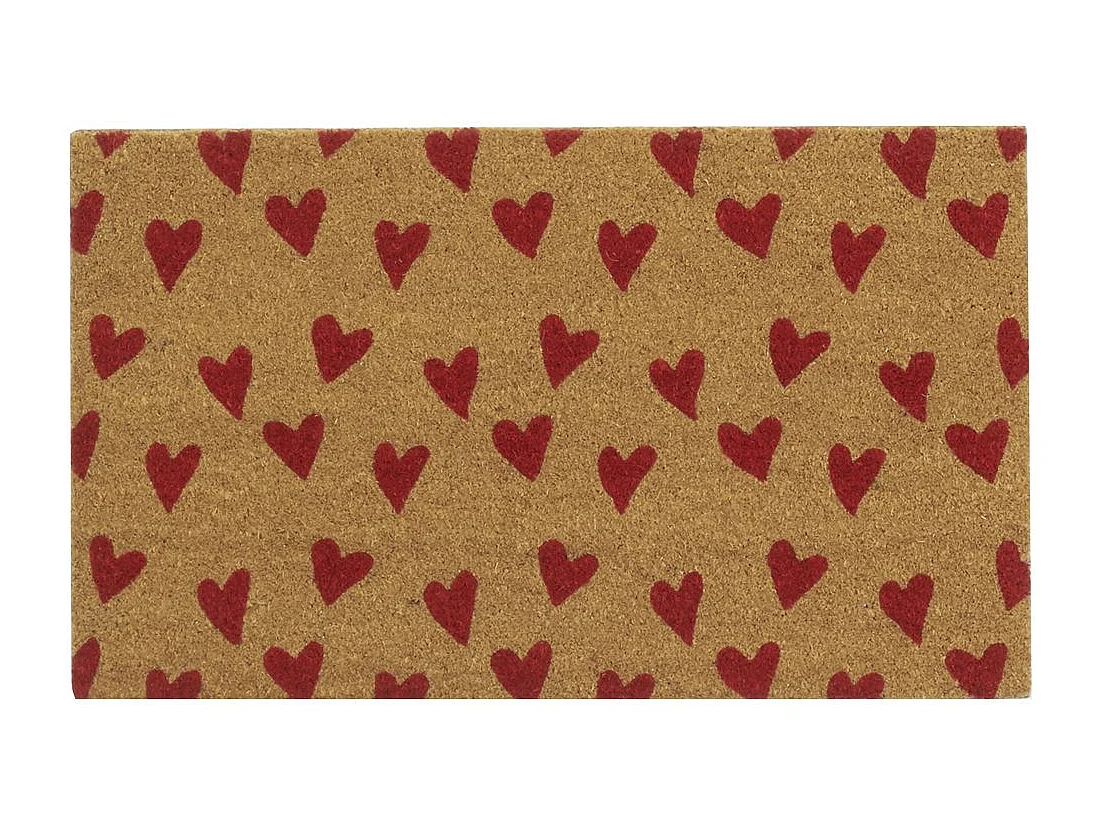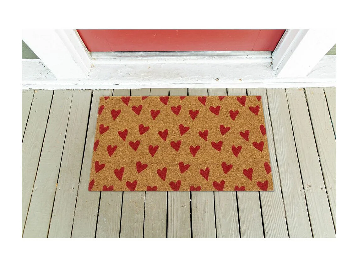 Paillasson coco intérieur extérieur 75 x 45 cm Coeurs imprimés rouges