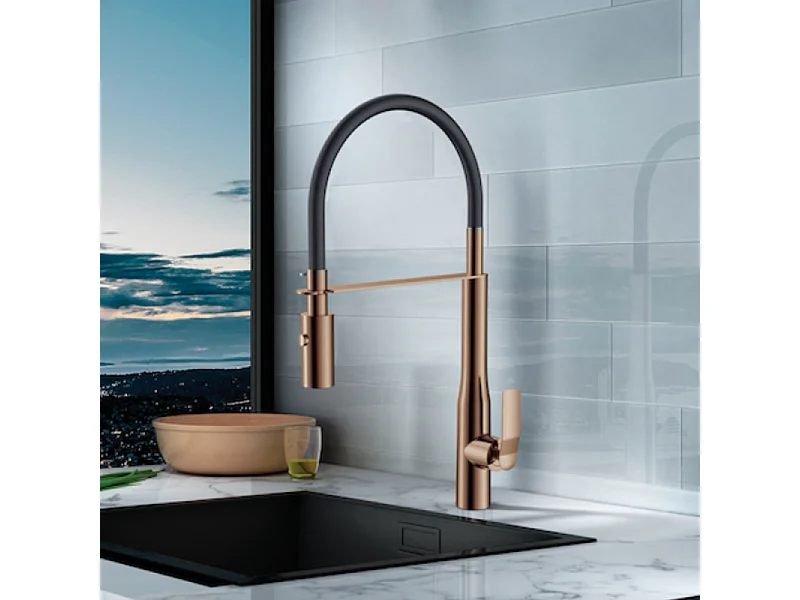 PAINI Mitigeur cuisine Addict Bec haut gold rose douchette extractible