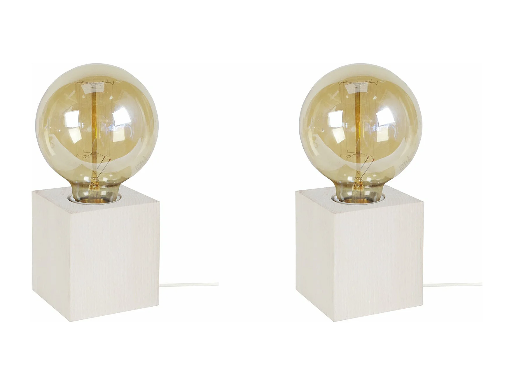 Pair de Lampes de chevet carré bois blanc d’Ivoire 21 cm.
