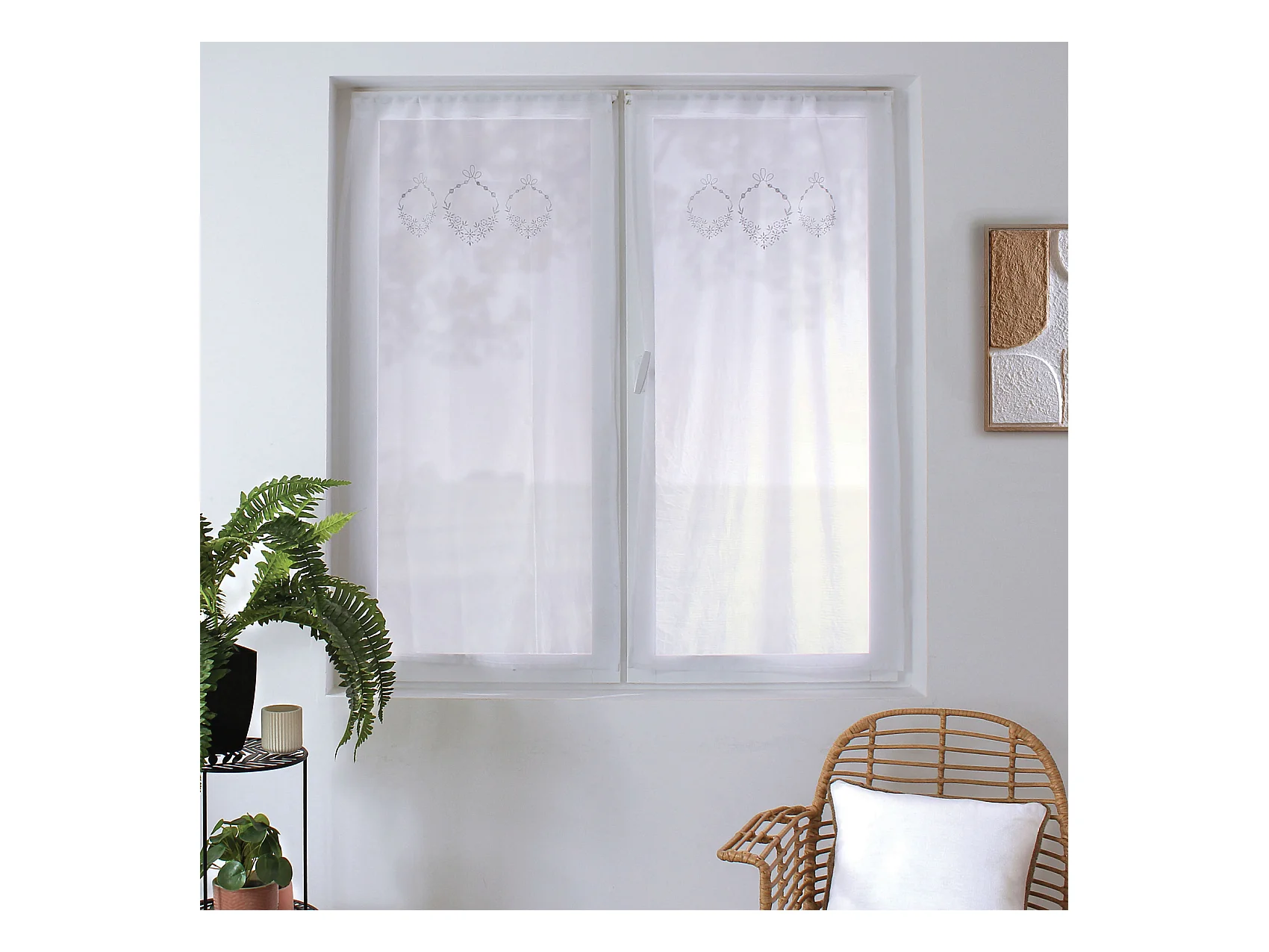 Paire de Voilages Brodés "Calisson" 60x160cm Blanc & Gris