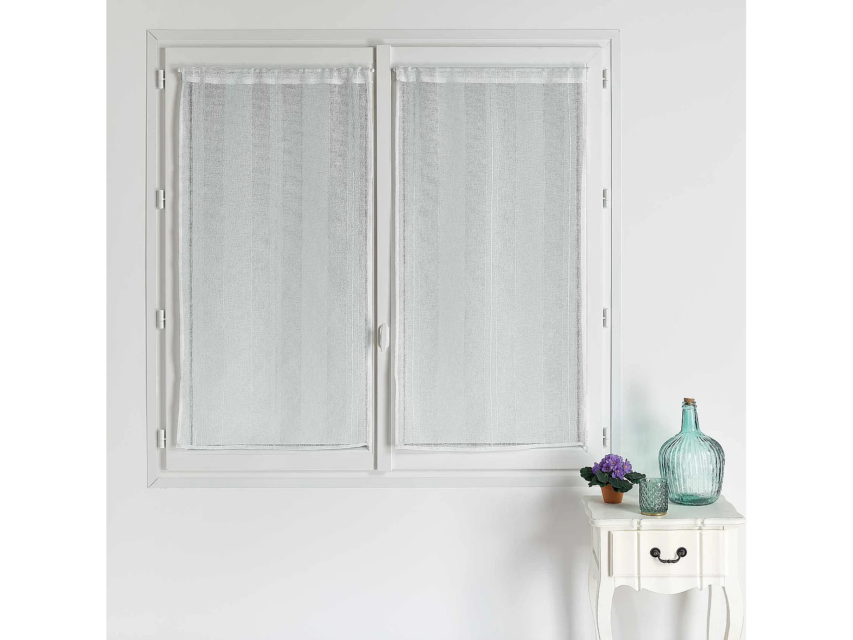 Paire de petits voilages unis à rayures fantaisie