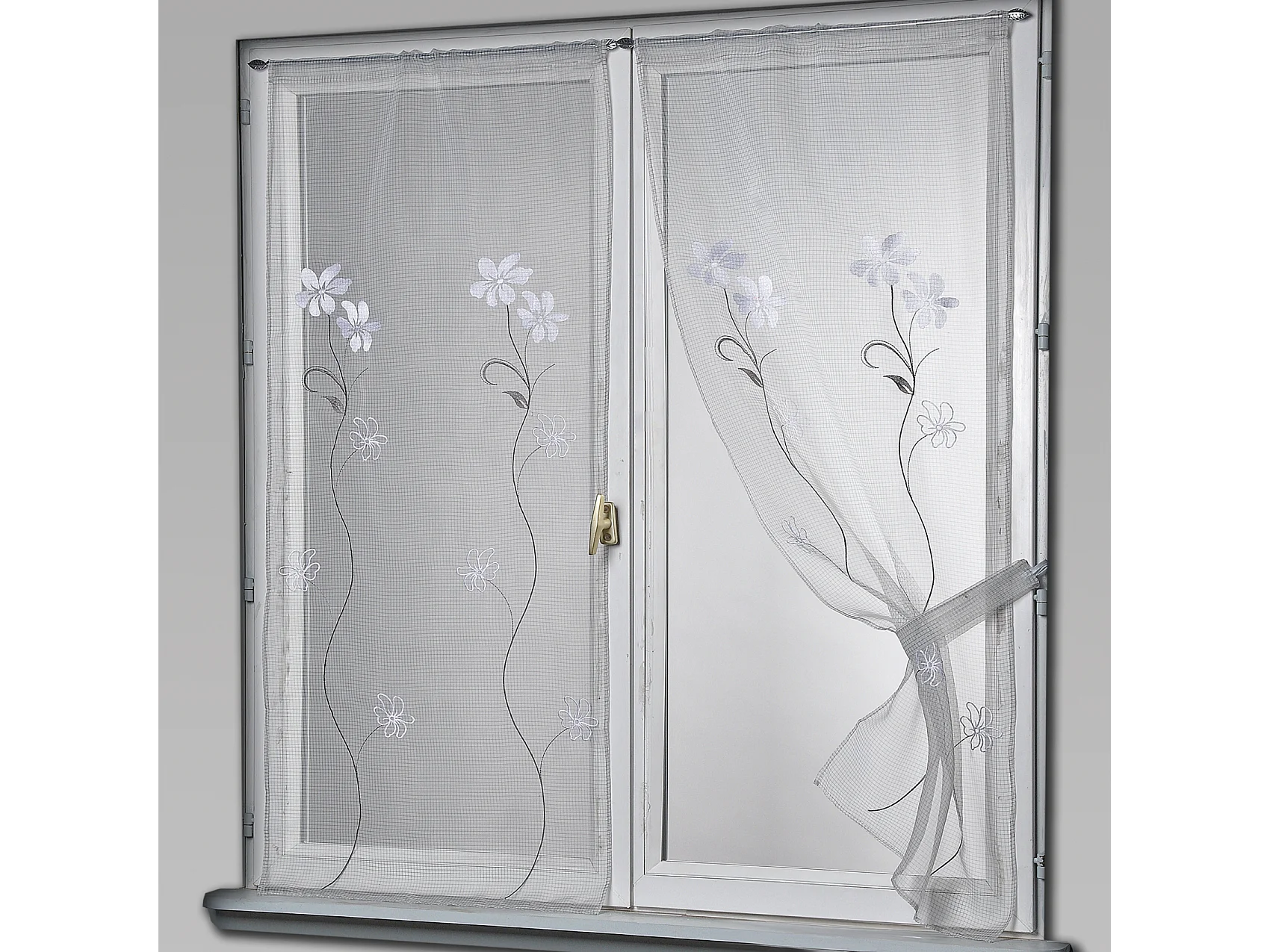 Paire de Voilages Brodés "Cosmos" 60x160cm Gris & Blanc