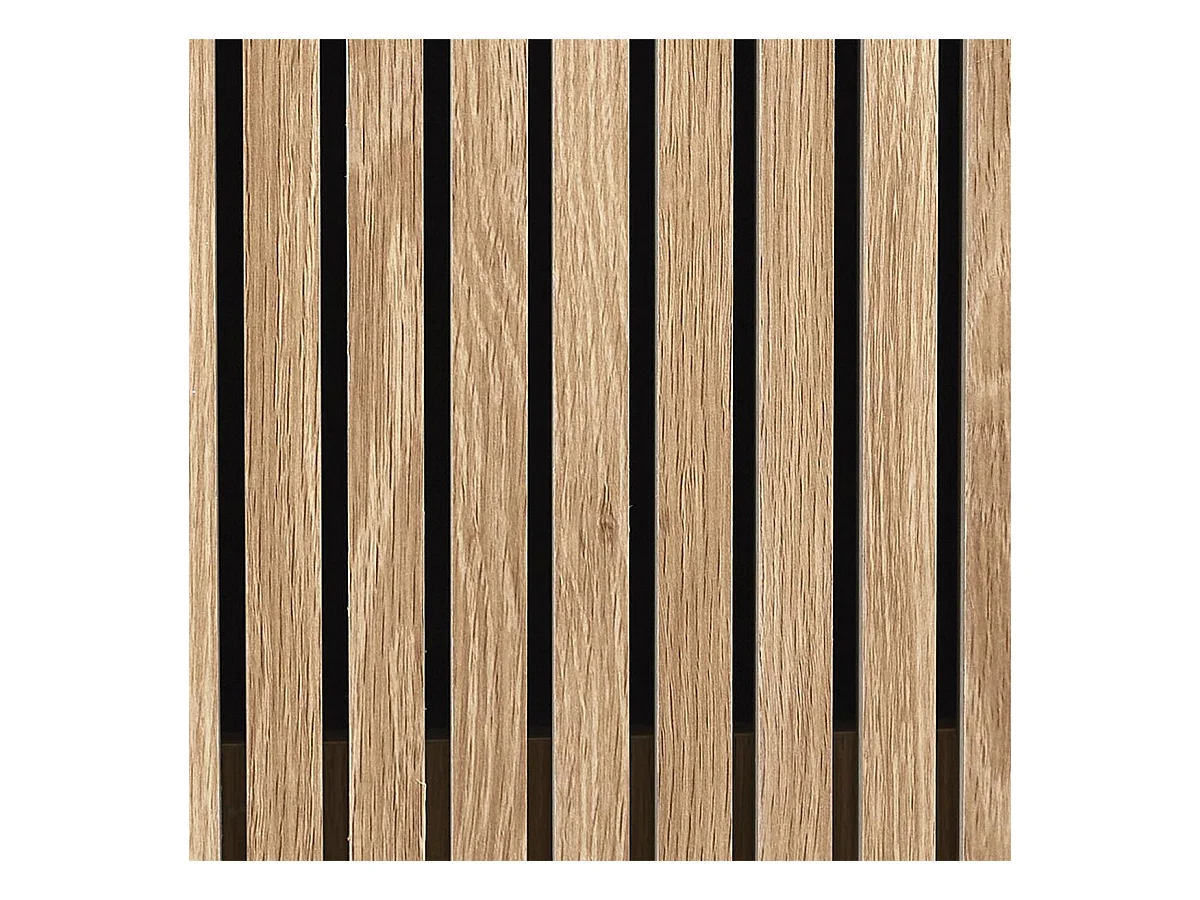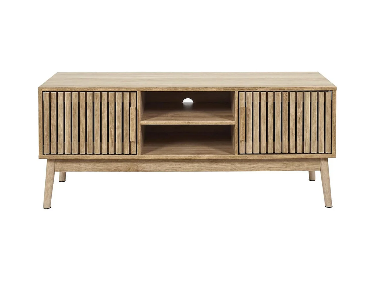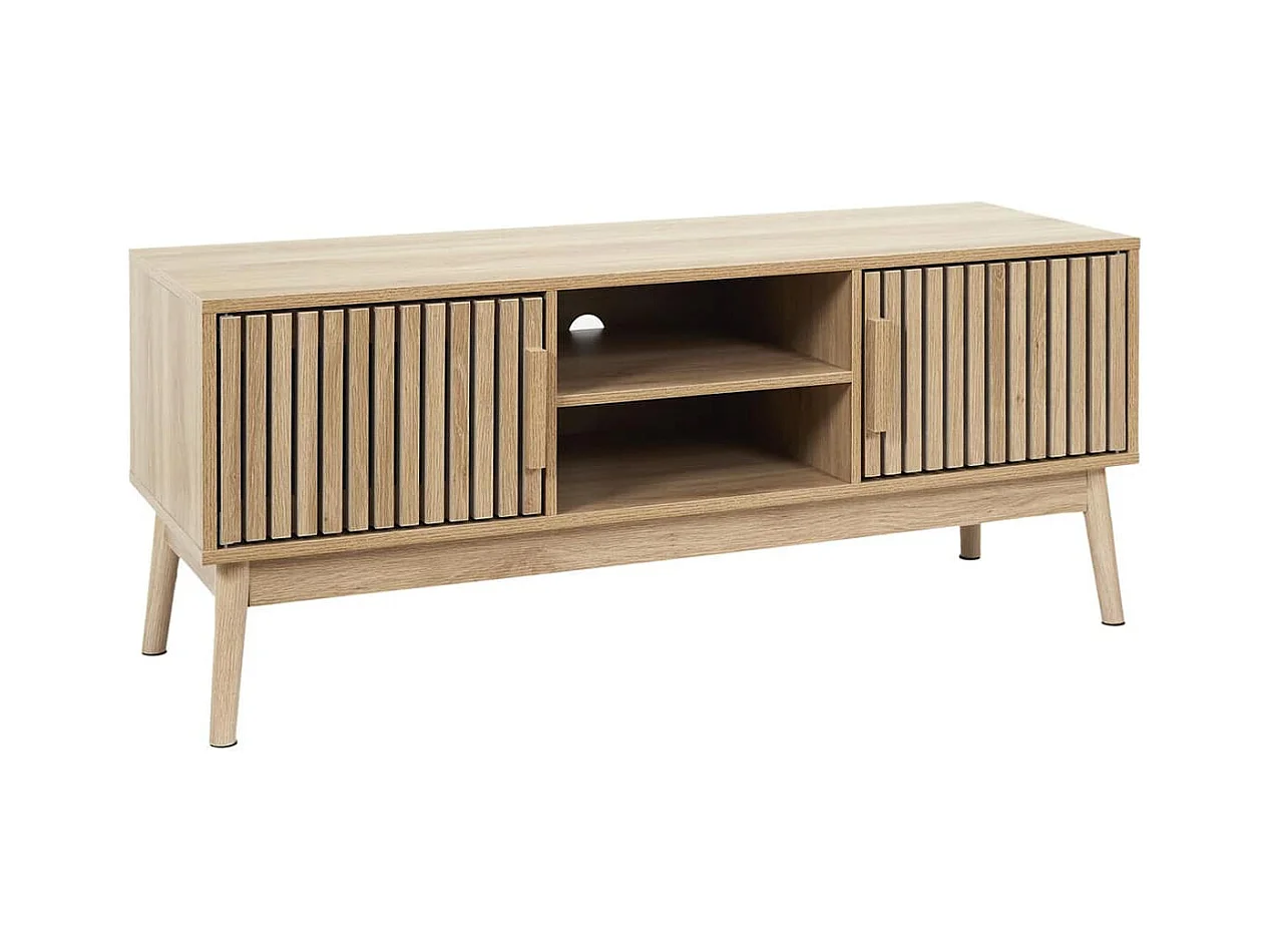 ROMY - Meuble TV 2 Portes 2 Niches Aspect Bois Finition Canyon Oak Effet Tasseaux