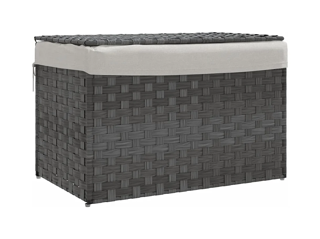 Panier à linge avec couvercle gris 55,5x35x34 cm résine tressée
